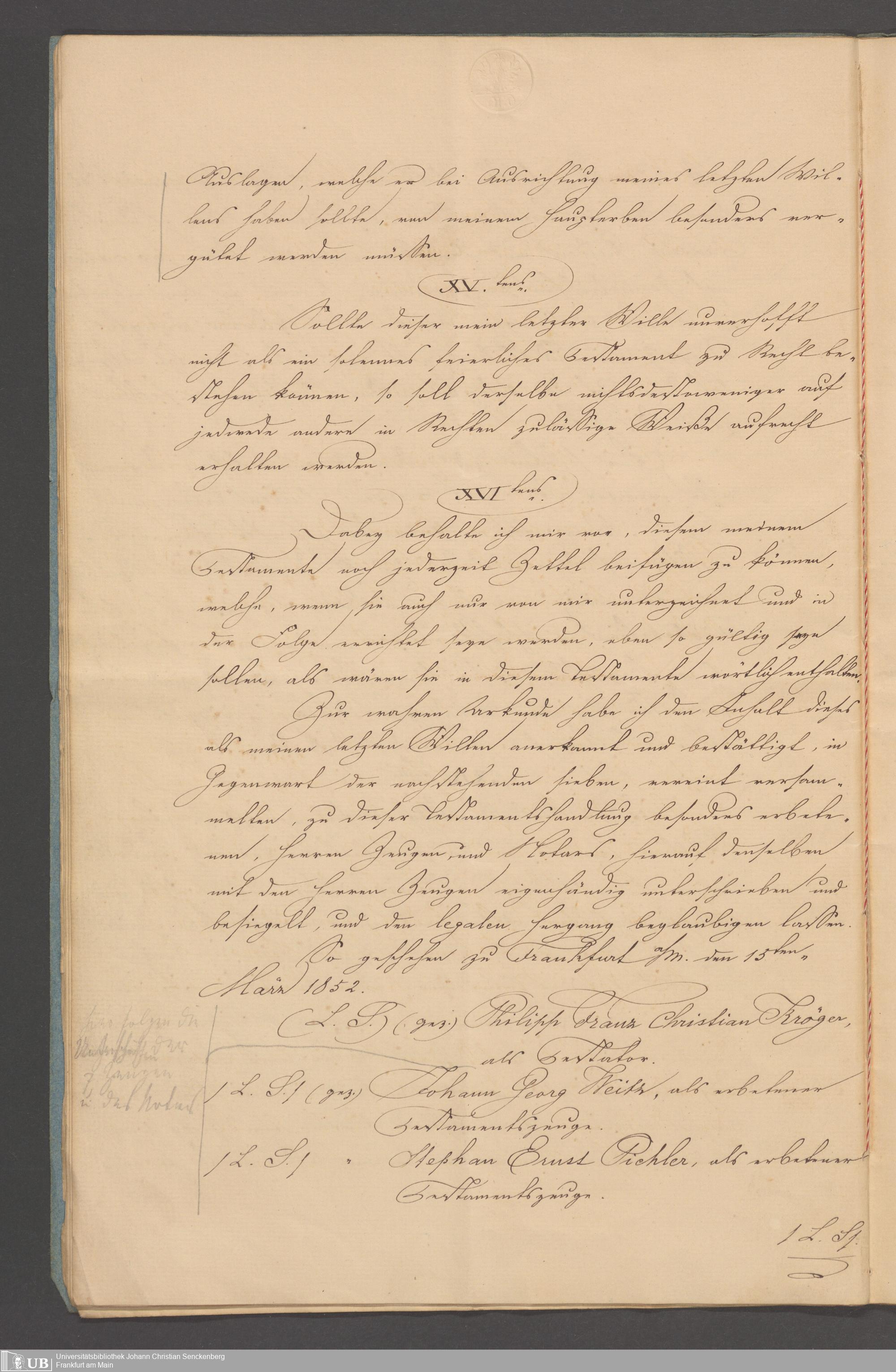 B 5 Dr. Senckenbergische Stiftung, 100 - Testament Philipp Franz Christian Kröger