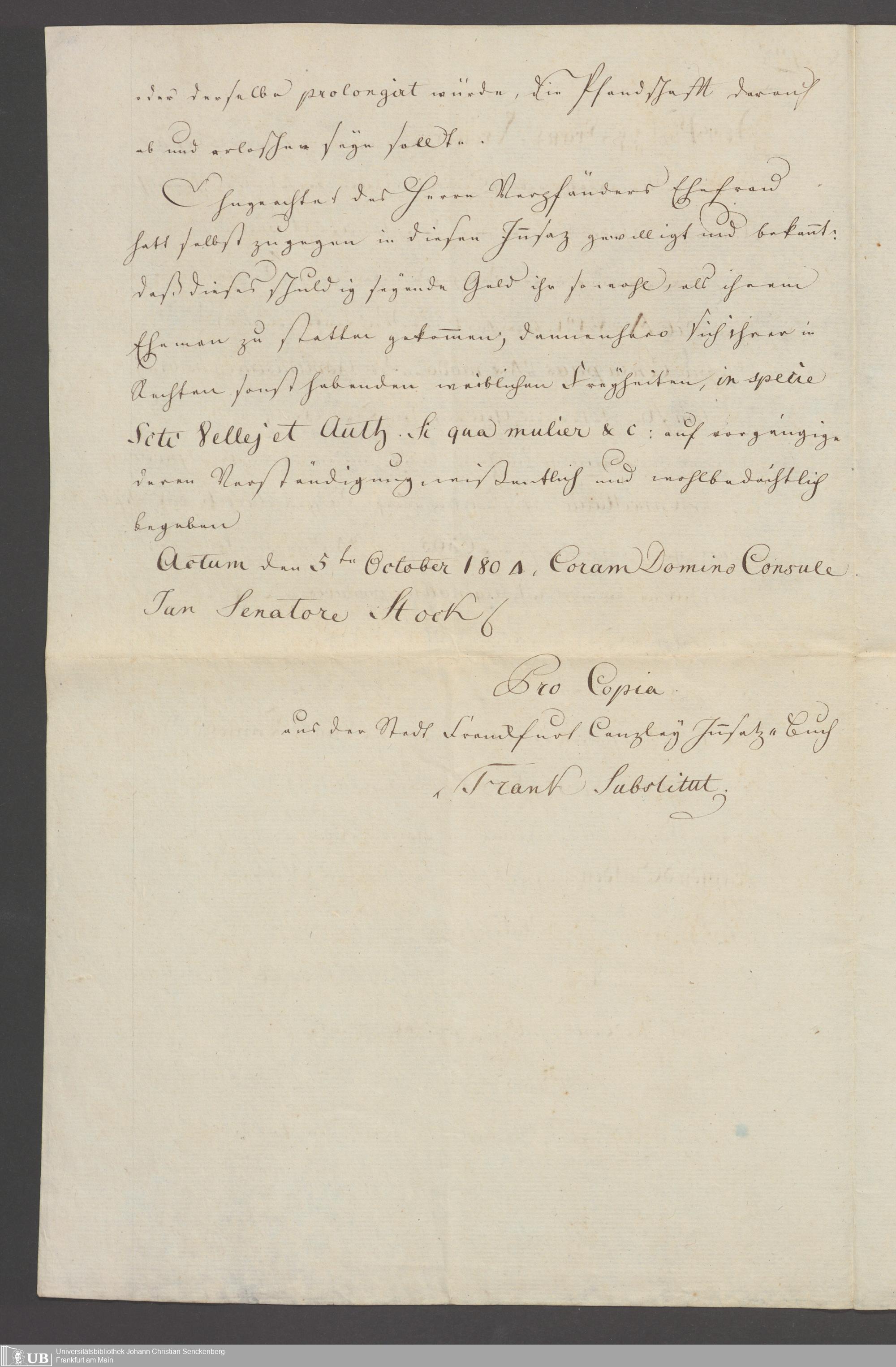 B 5 Dr. Senckenbergische Stiftung, 100 - Testament Philipp Franz Christian Kröger