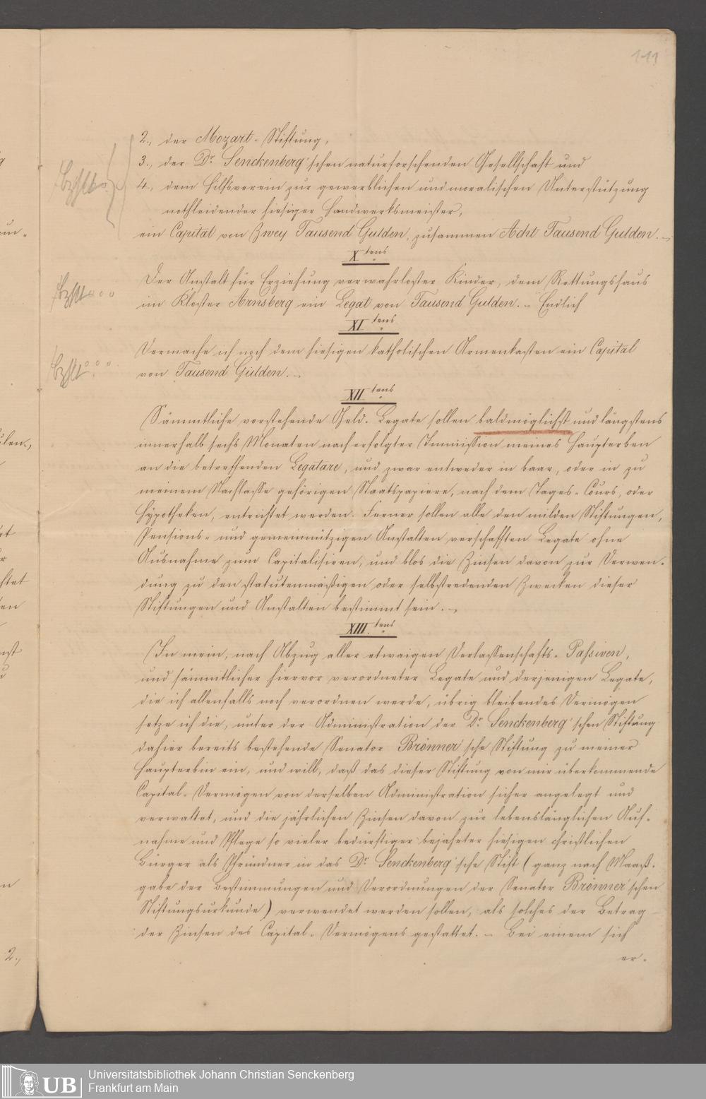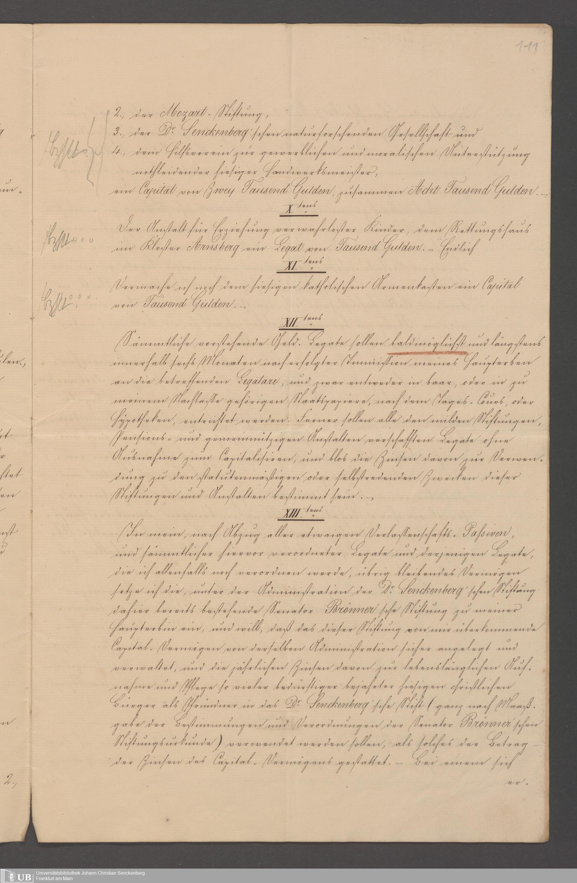 B 5 Dr. Senckenbergische Stiftung, 100 - Testament Philipp Franz Christian Kröger
