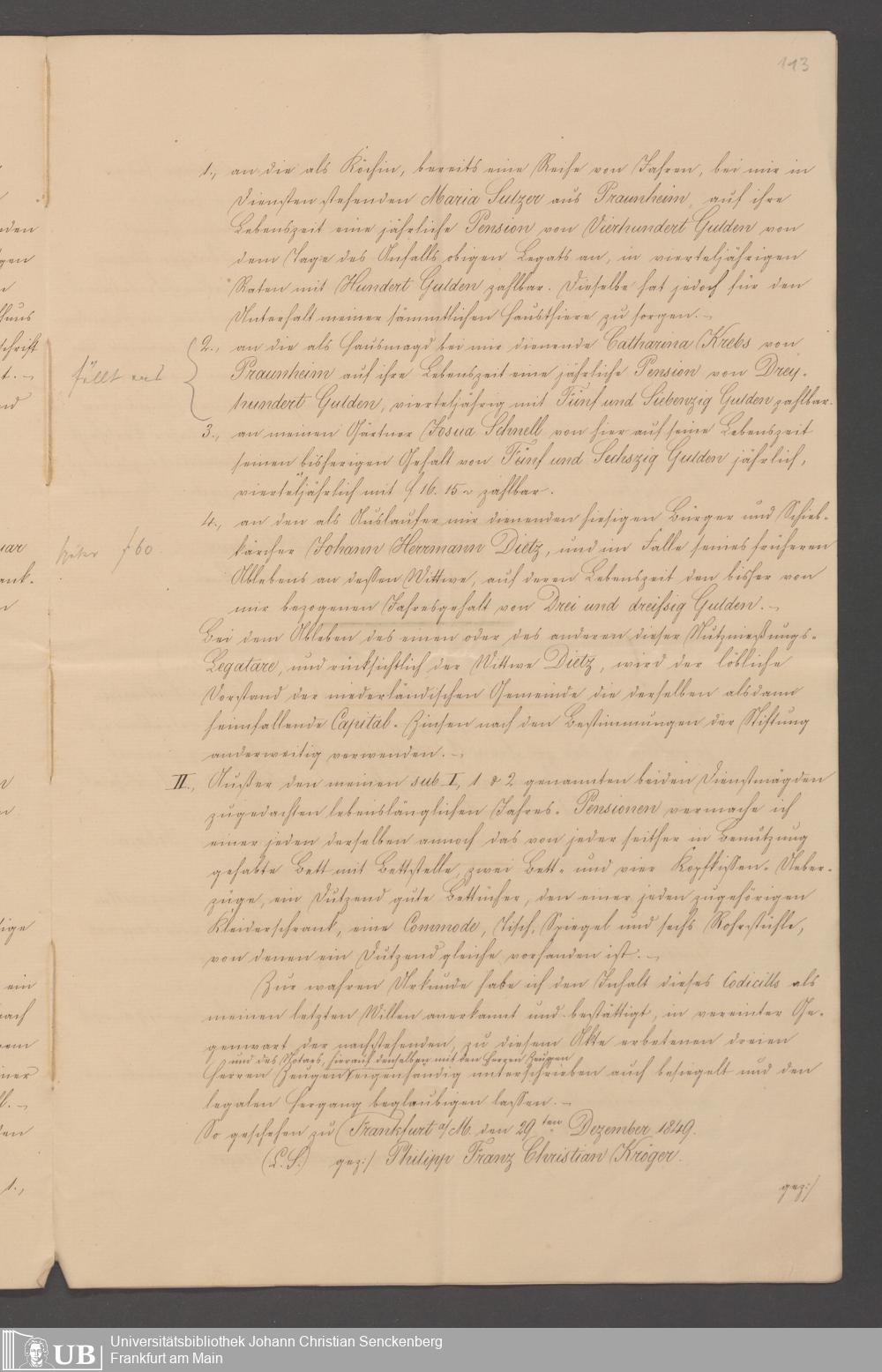 B 5 Dr. Senckenbergische Stiftung, 100 - Testament Philipp Franz Christian Kröger