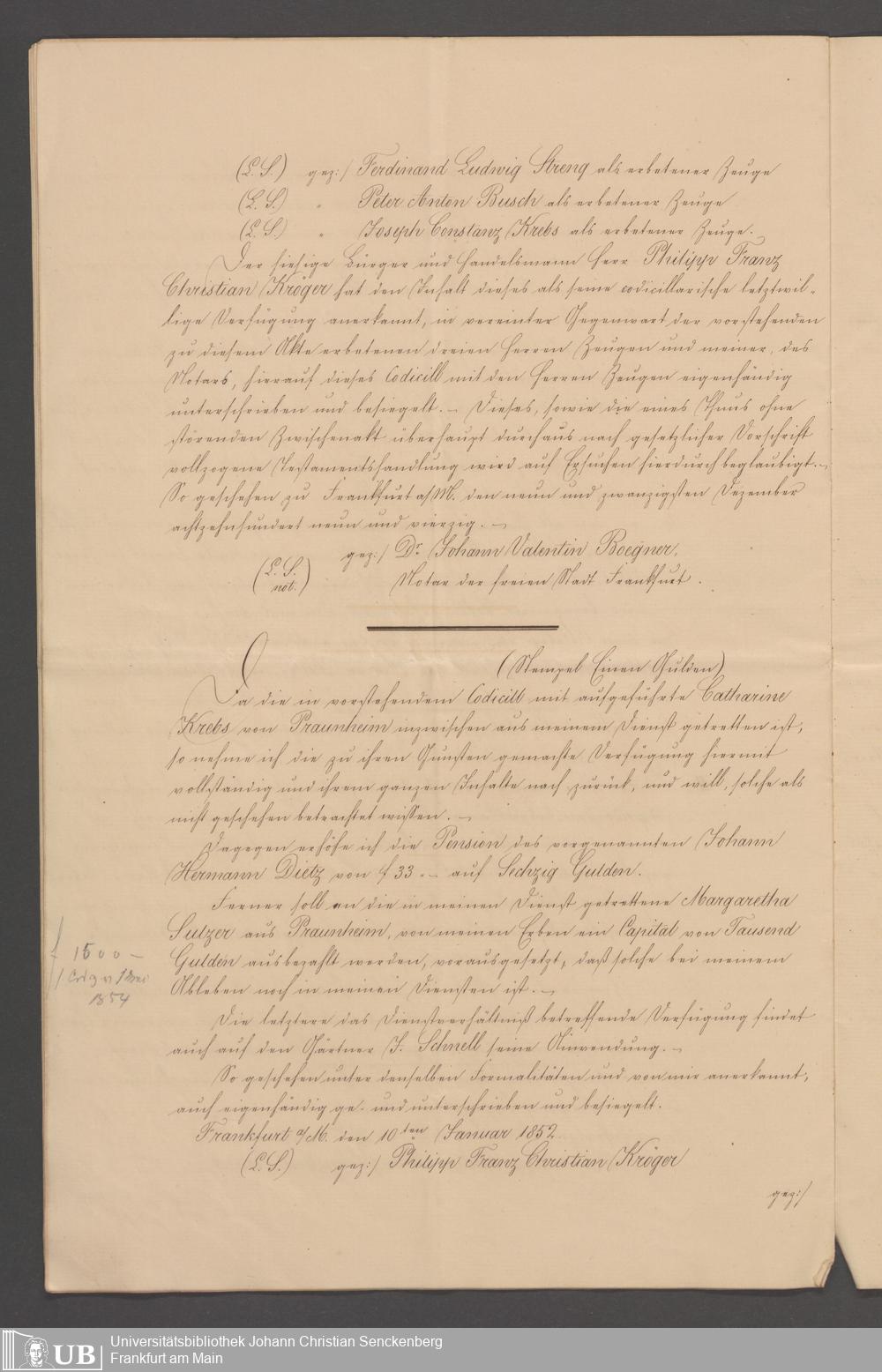 B 5 Dr. Senckenbergische Stiftung, 100 - Testament Philipp Franz Christian Kröger