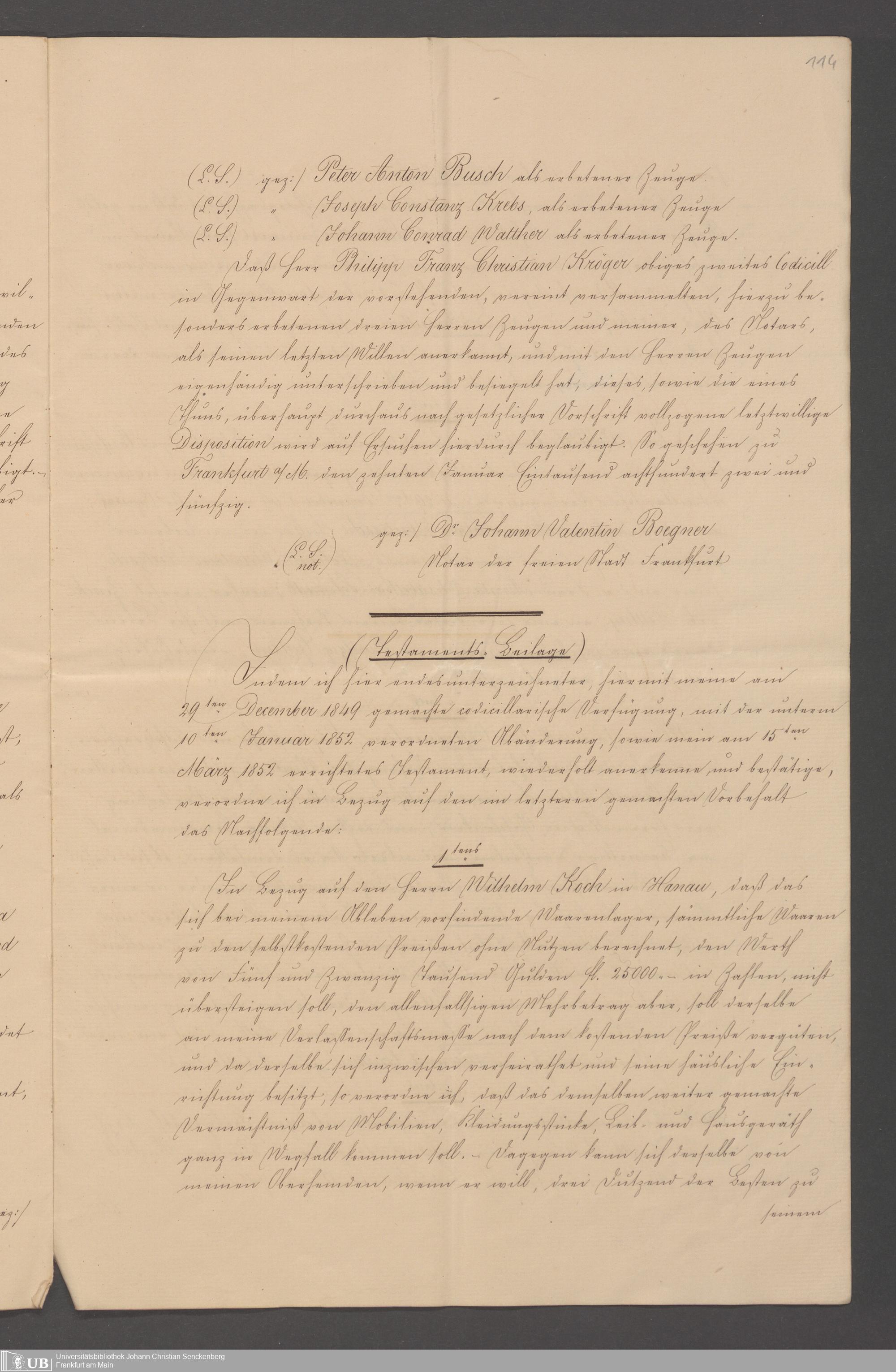 B 5 Dr. Senckenbergische Stiftung, 100 - Testament Philipp Franz Christian Kröger