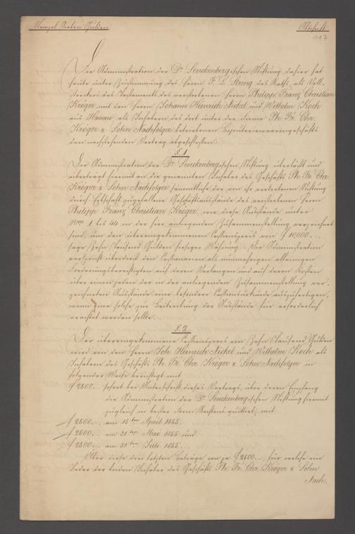 B 5 Dr. Senckenbergische Stiftung, 100 - Testament Philipp Franz Christian Kröger
