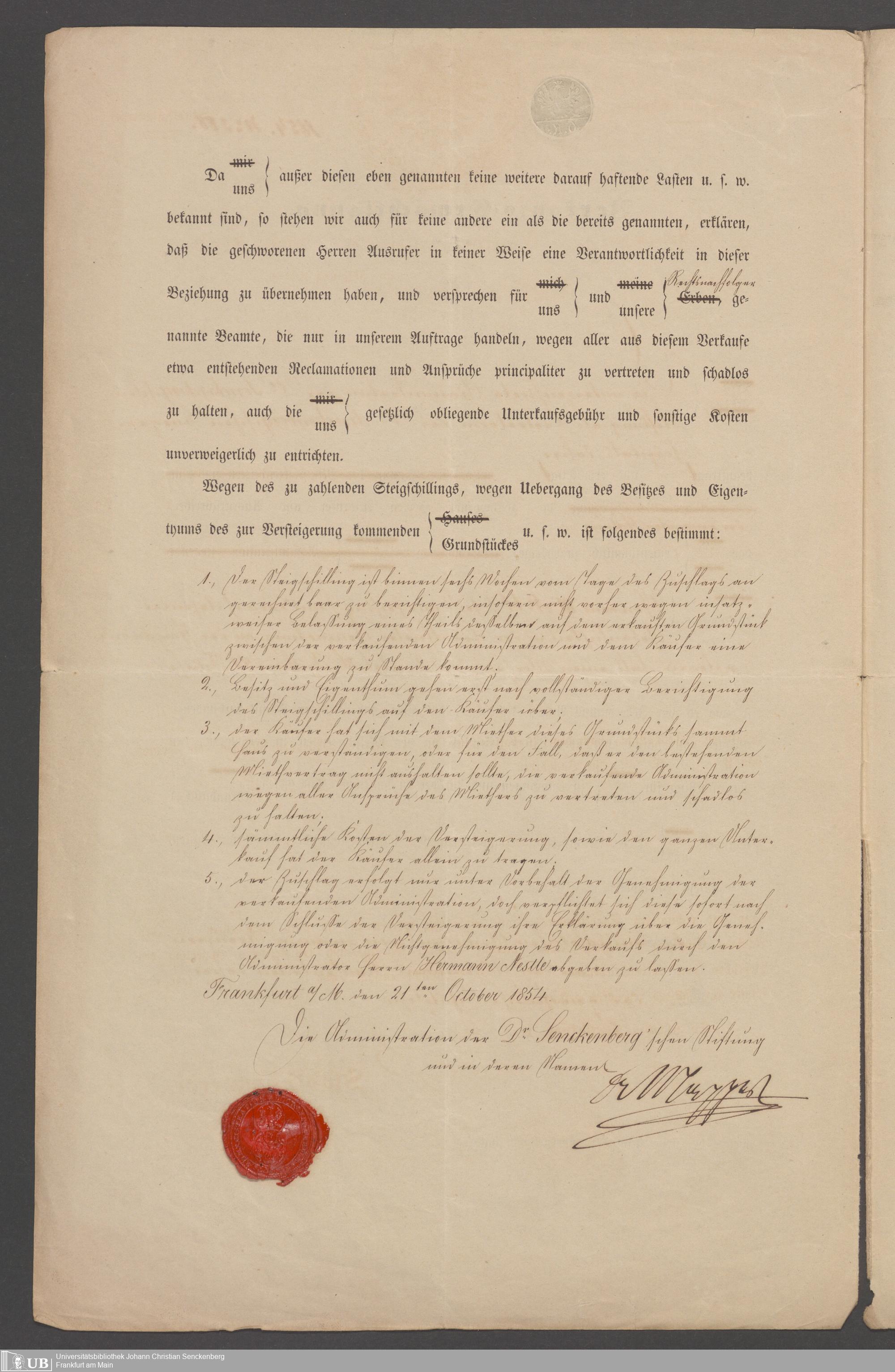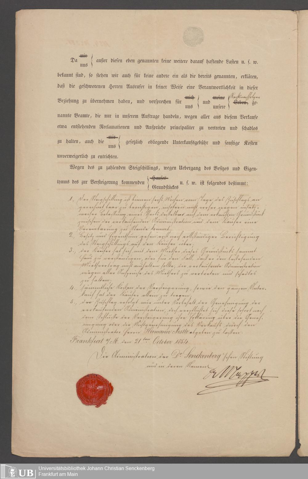 B 5 Dr. Senckenbergische Stiftung, 100 - Testament Philipp Franz Christian Kröger