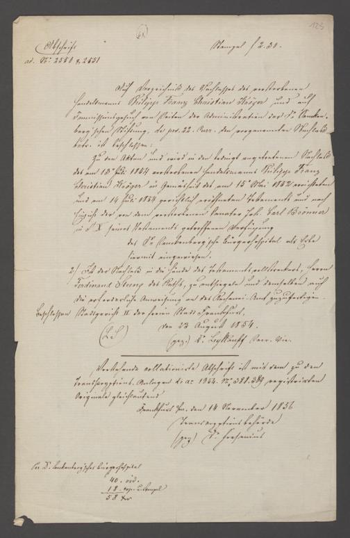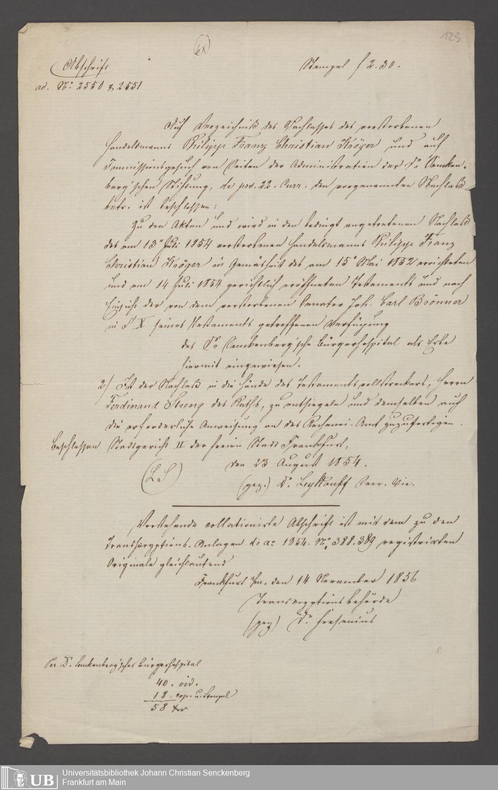 B 5 Dr. Senckenbergische Stiftung, 100 - Testament Philipp Franz Christian Kröger
