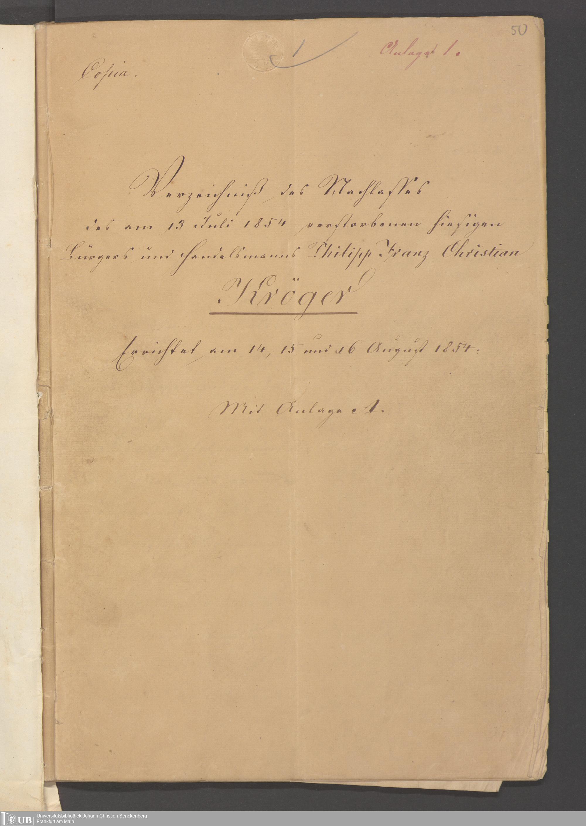 B 5 Dr. Senckenbergische Stiftung, 101 - zum Testament Kröger I