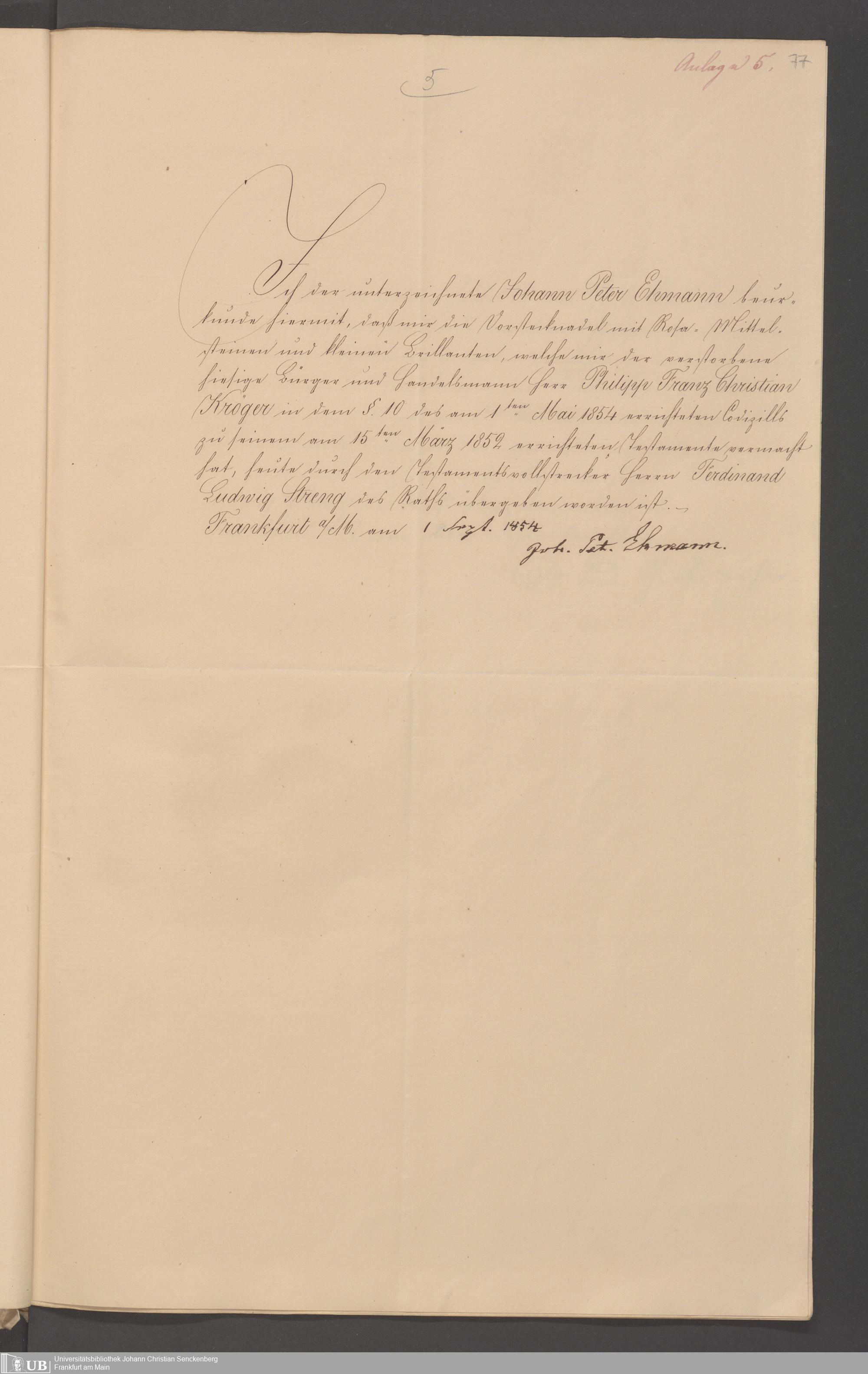 B 5 Dr. Senckenbergische Stiftung, 101 - zum Testament Kröger I