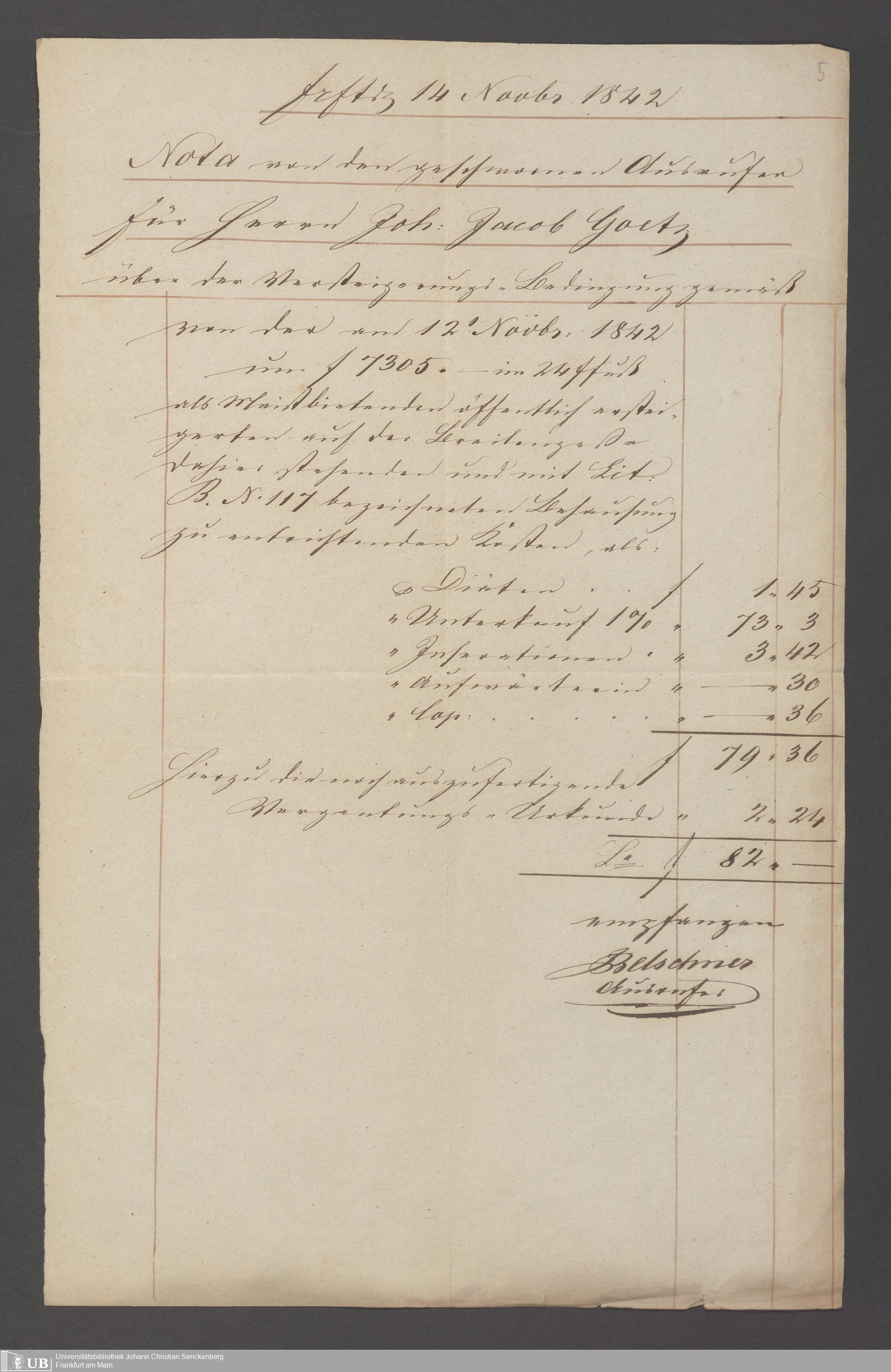 B 5 Dr. Senckenbergische Stiftung, 42 - Haus B 117 Breitegasse (p. Na J.C.S. III.3.a.384)
