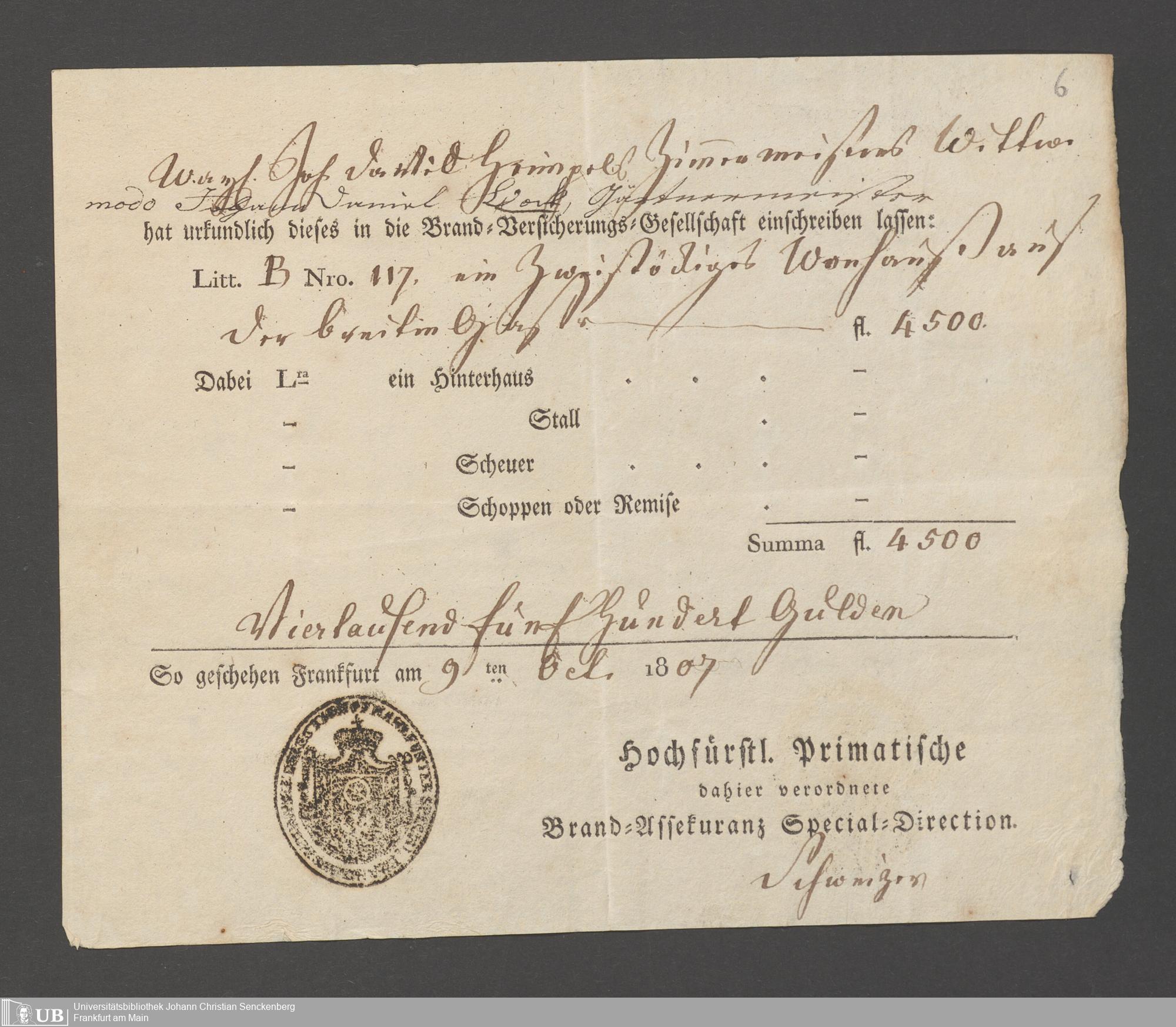 B 5 Dr. Senckenbergische Stiftung, 42 - Haus B 117 Breitegasse (p. Na J.C.S. III.3.a.384)