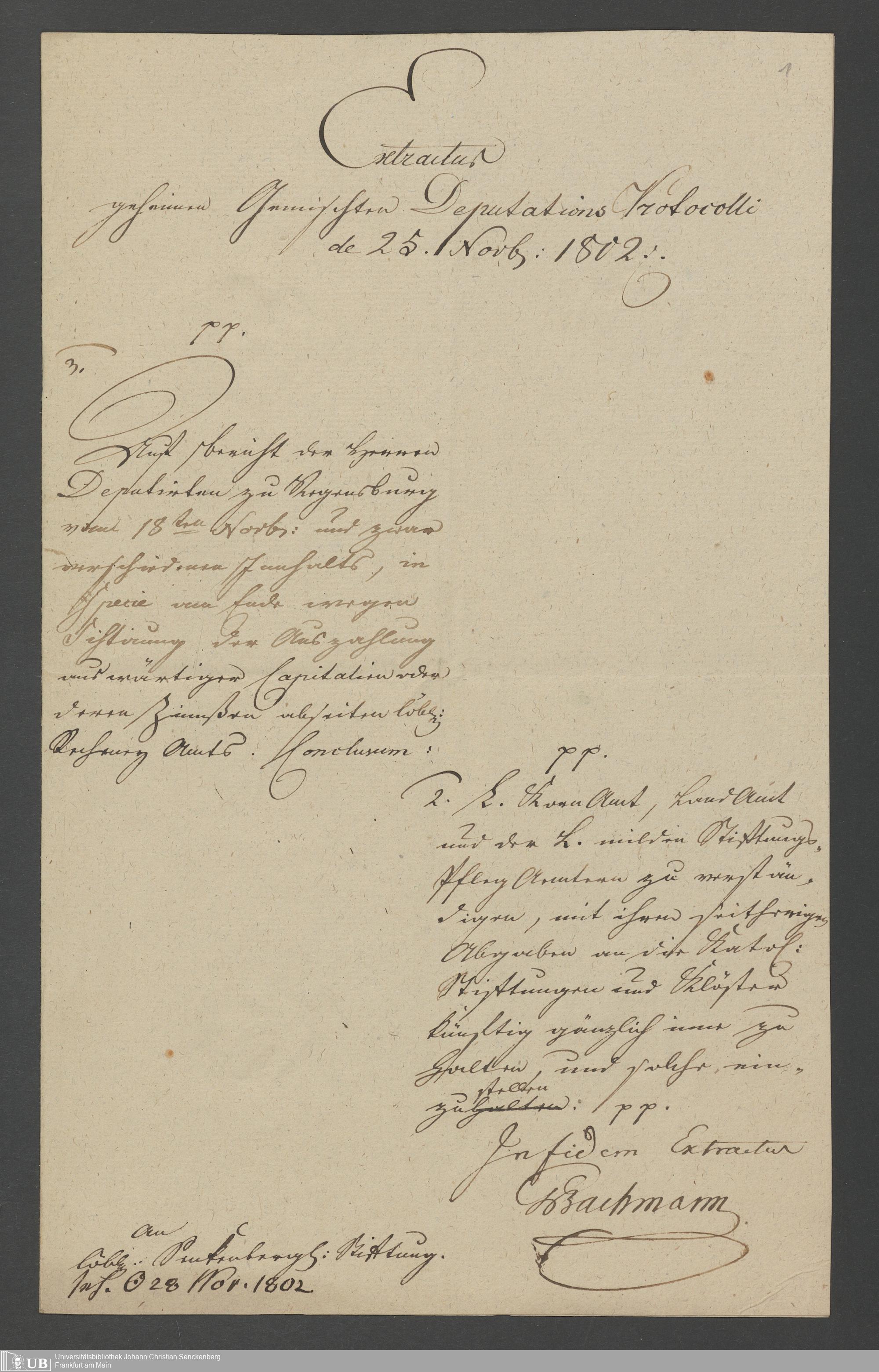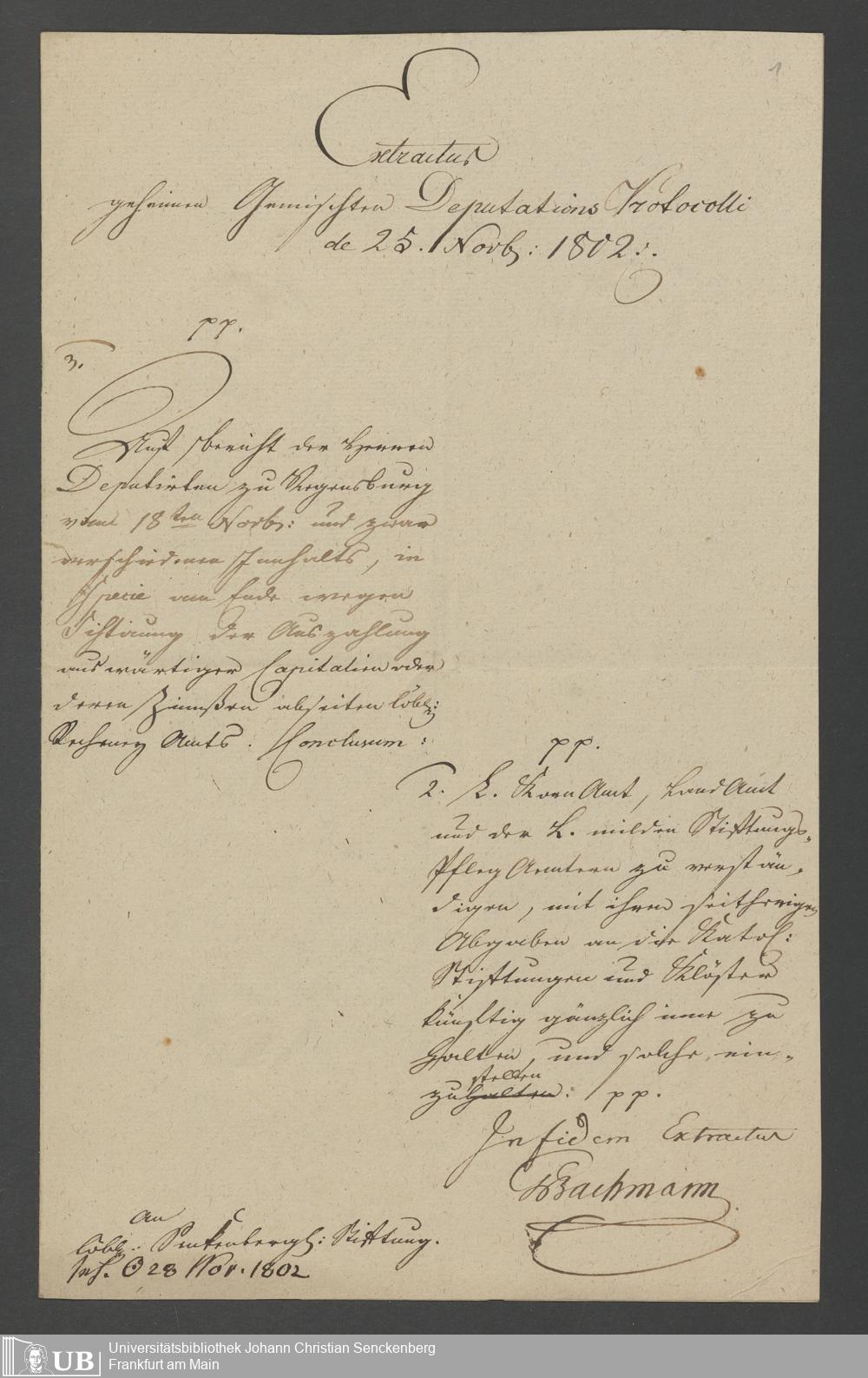 B 5 Dr. Senckenbergische Stiftung, 6 - Auszüge aus den Regensburger Deputationsprotokollen