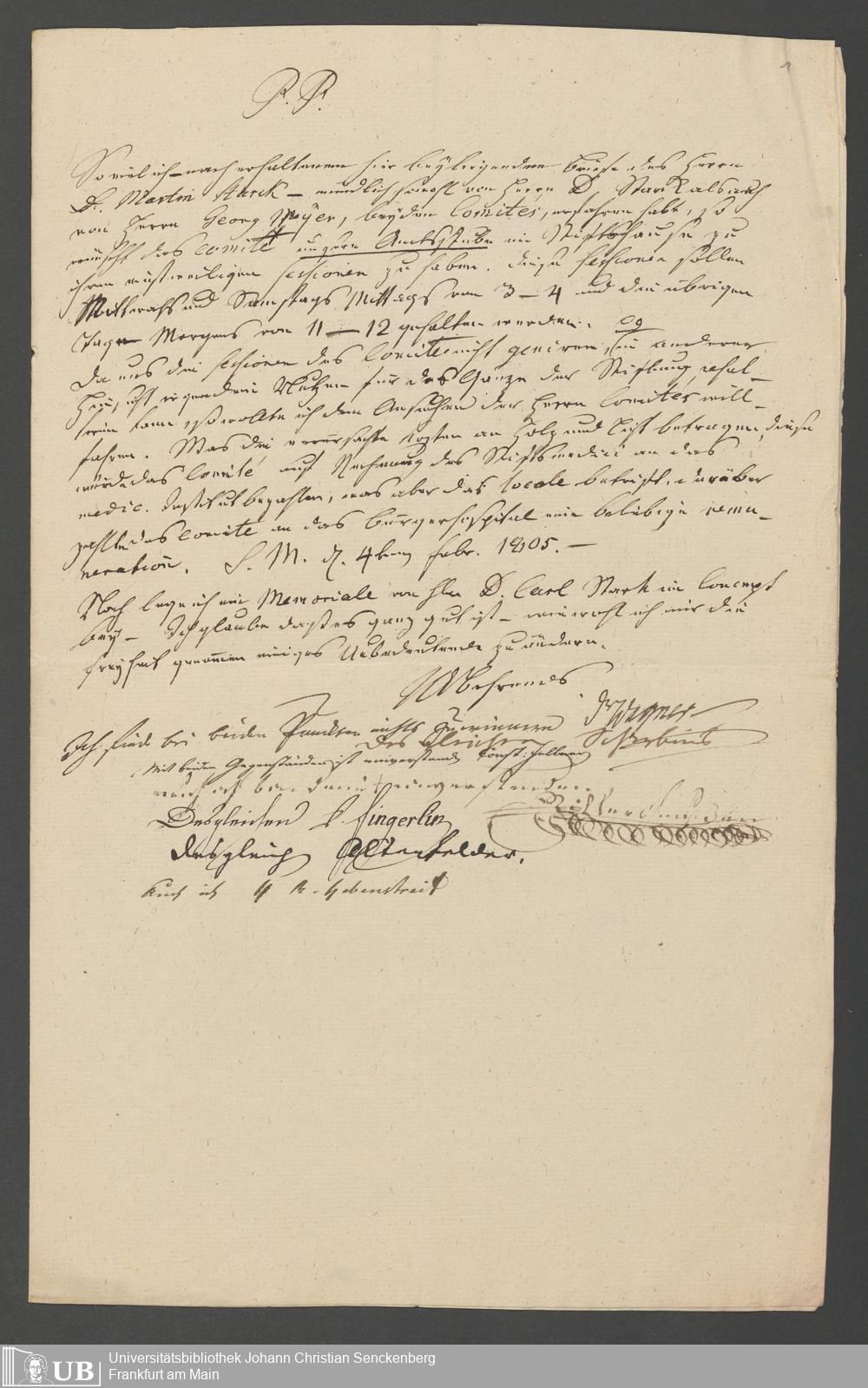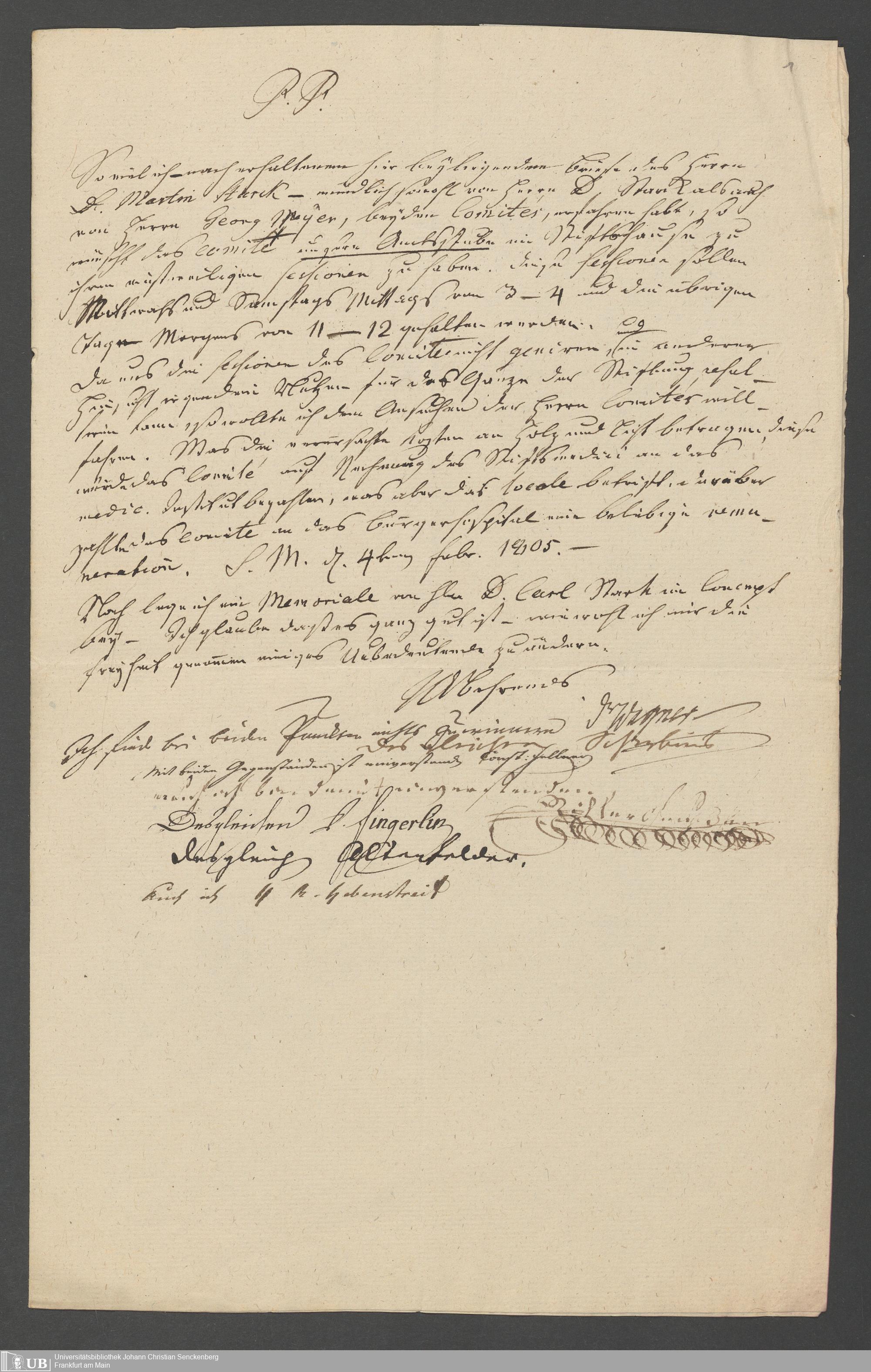 B 5 Dr. Senckenbergische Stiftung, 7 - Gesuch um Überlassung eines Zimmers für ein Comite an Dr. Starck