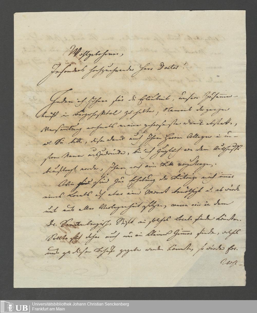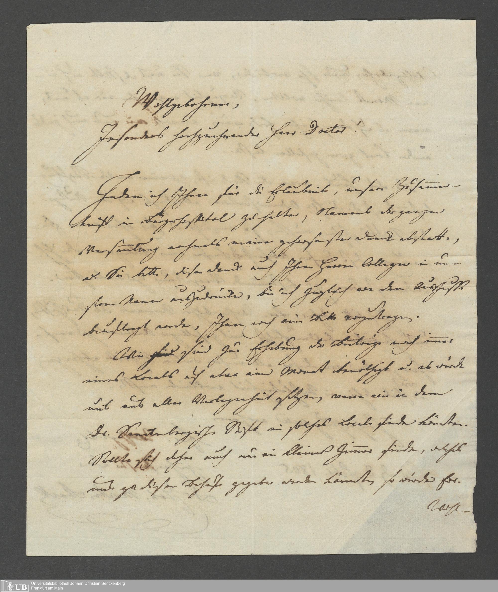 B 5 Dr. Senckenbergische Stiftung, 7 - Gesuch um Überlassung eines Zimmers für ein Comite an Dr. Starck