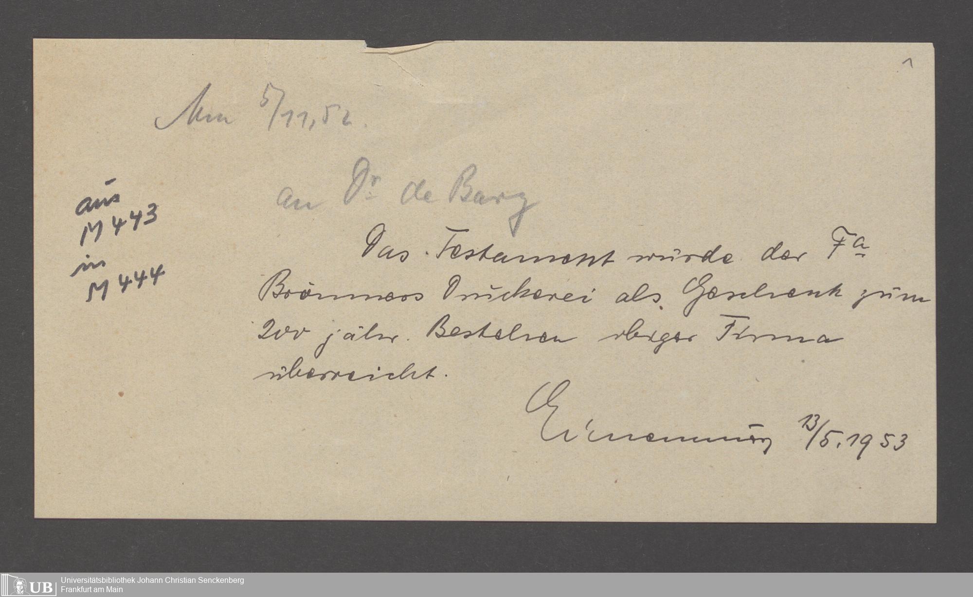 B 5 Dr. Senckenbergische Stiftung, 94 - Erbschaft Senator Brönner
