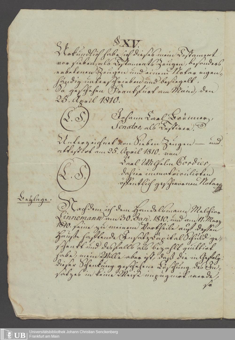 Nachlass Johann Christian Senckenberg