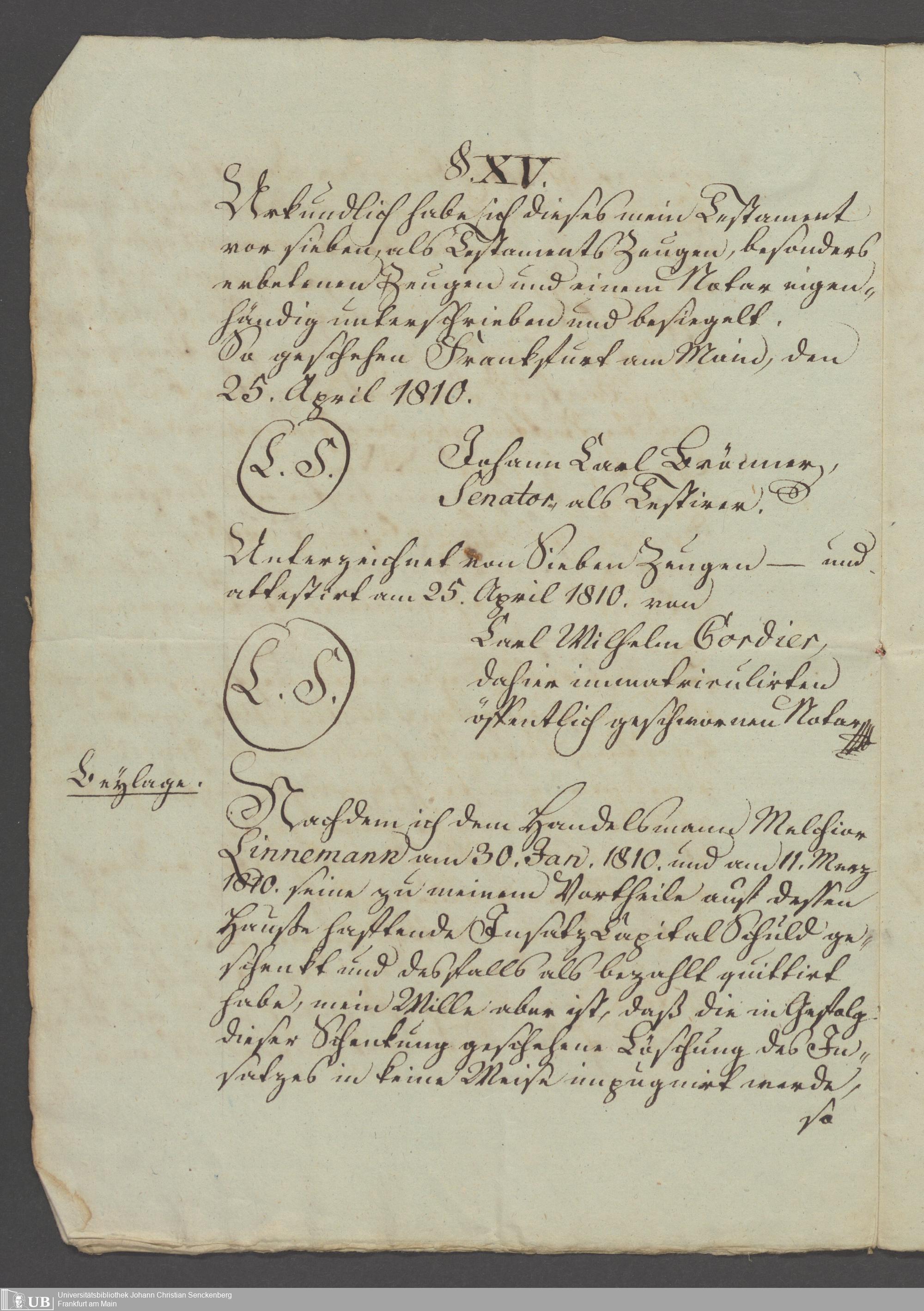 B 5 Dr. Senckenbergische Stiftung, 94 - Erbschaft Senator Brönner