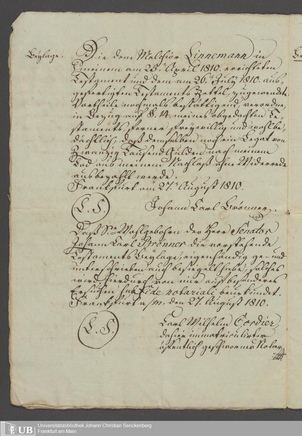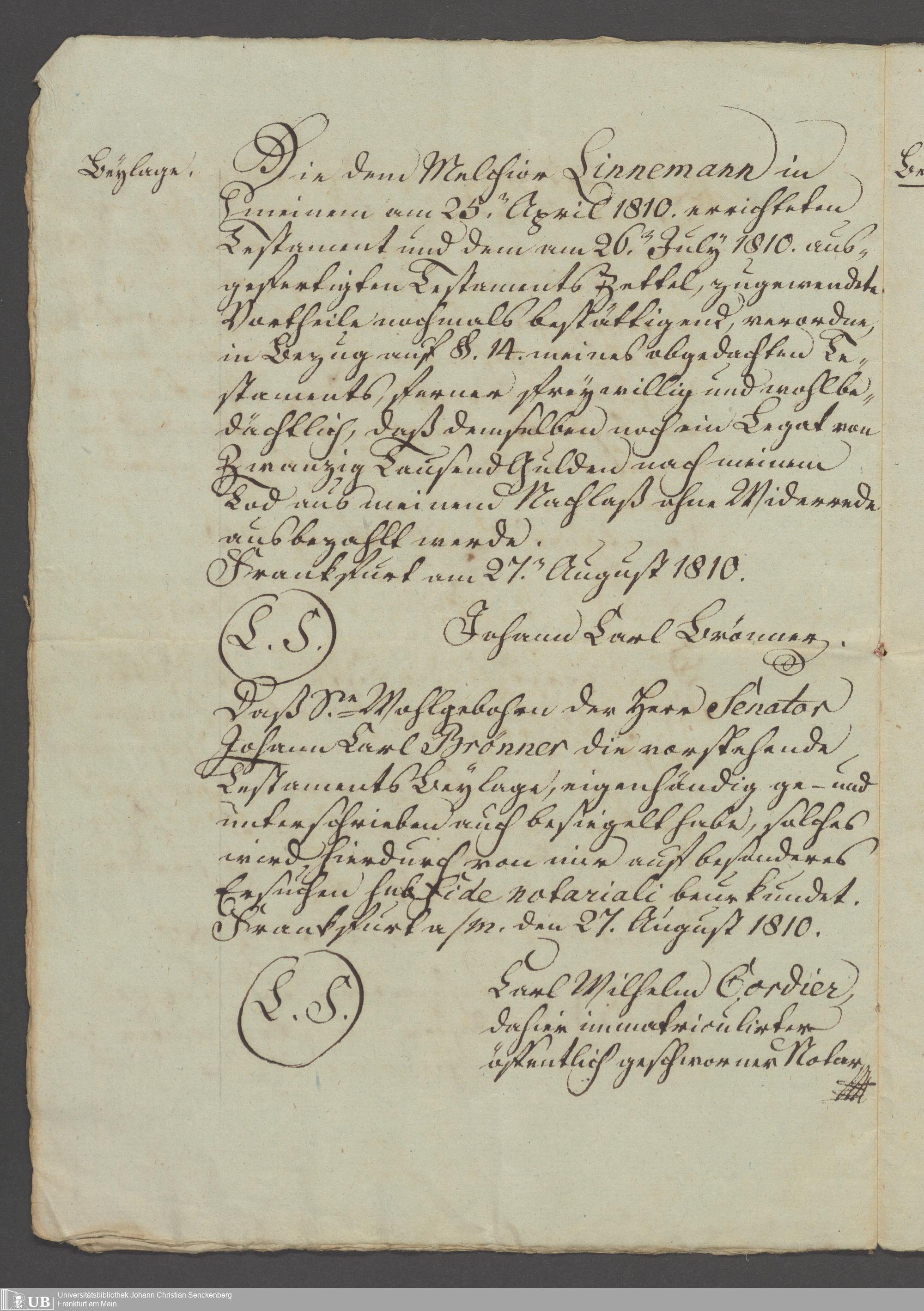B 5 Dr. Senckenbergische Stiftung, 94 - Erbschaft Senator Brönner