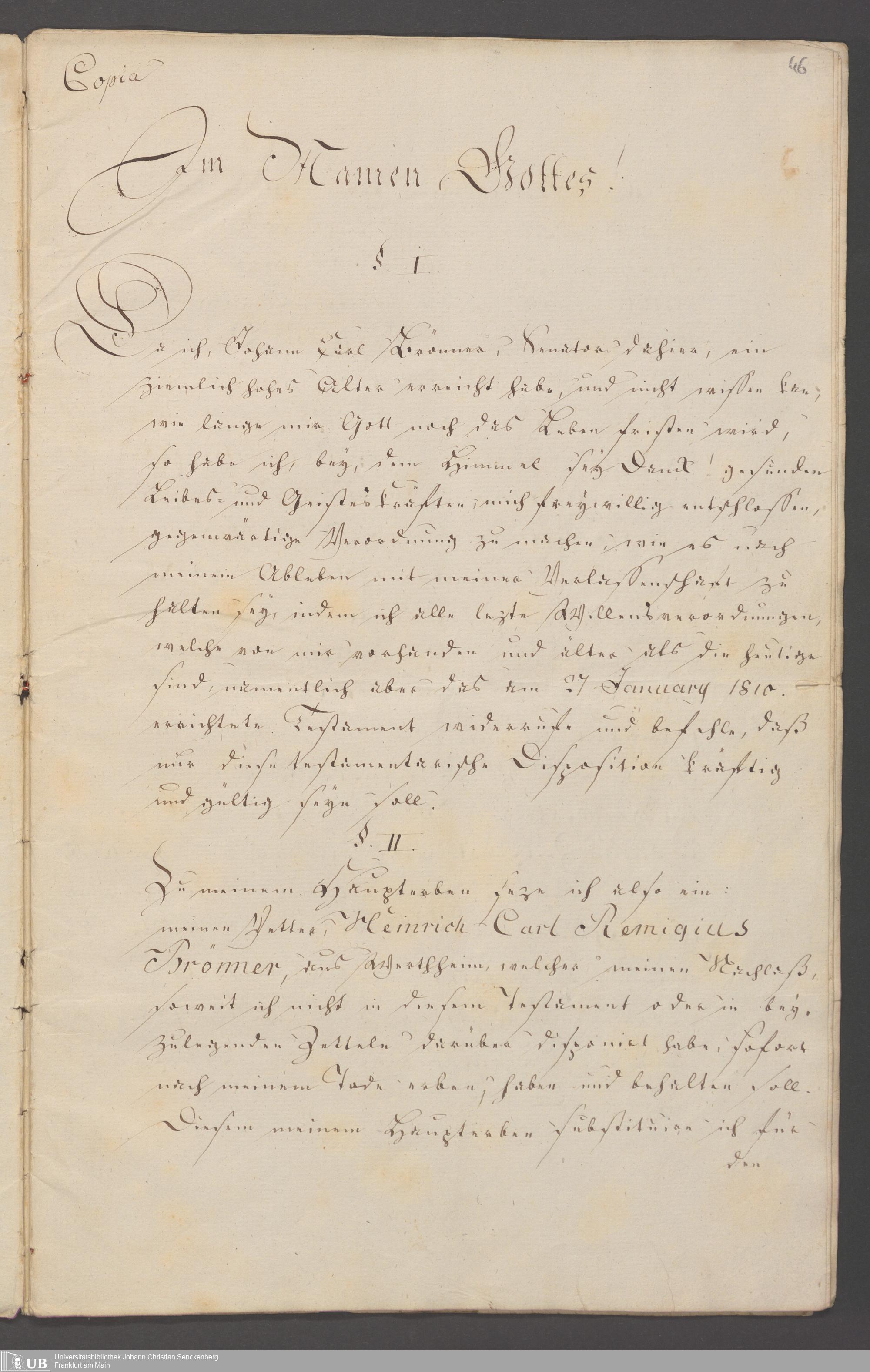 Nachlass Johann Christian Senckenberg