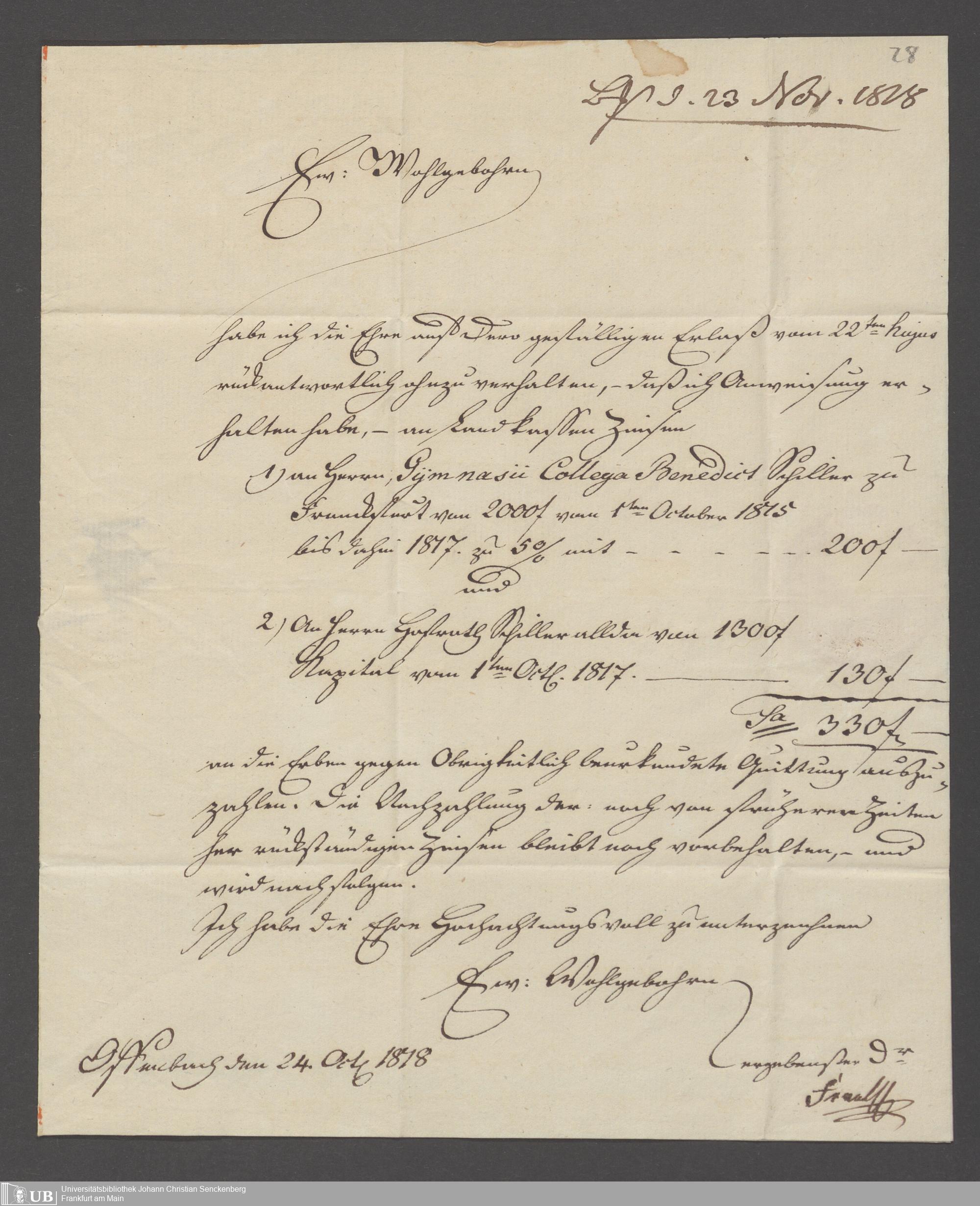 B 5 Dr. Senckenbergische Stiftung, 97 - Erbschaft Dr. Schiller