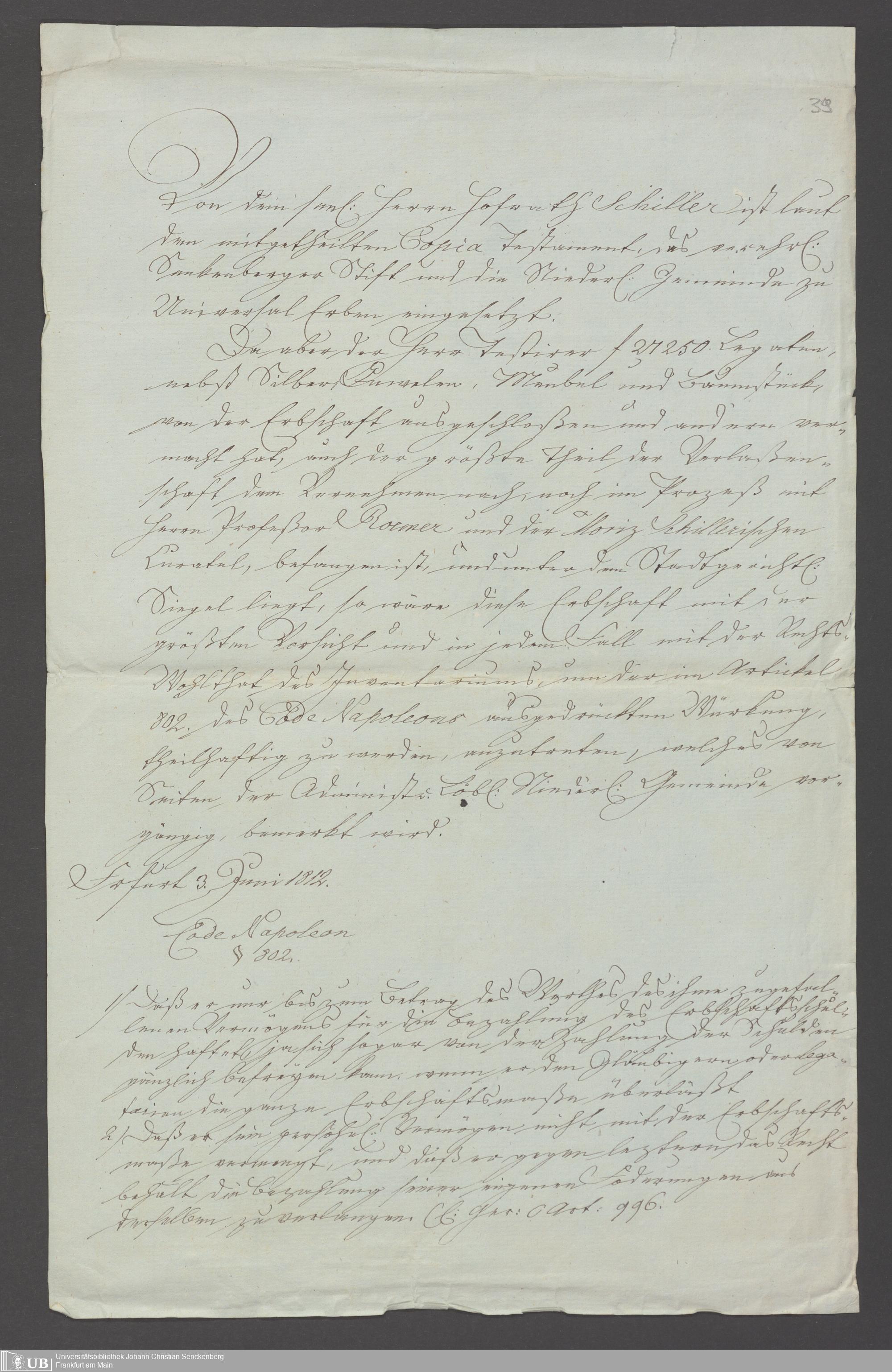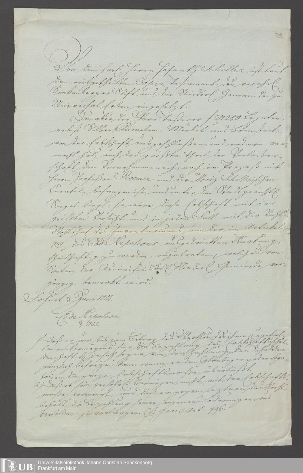 B 5 Dr. Senckenbergische Stiftung, 97 - Erbschaft Dr. Schiller