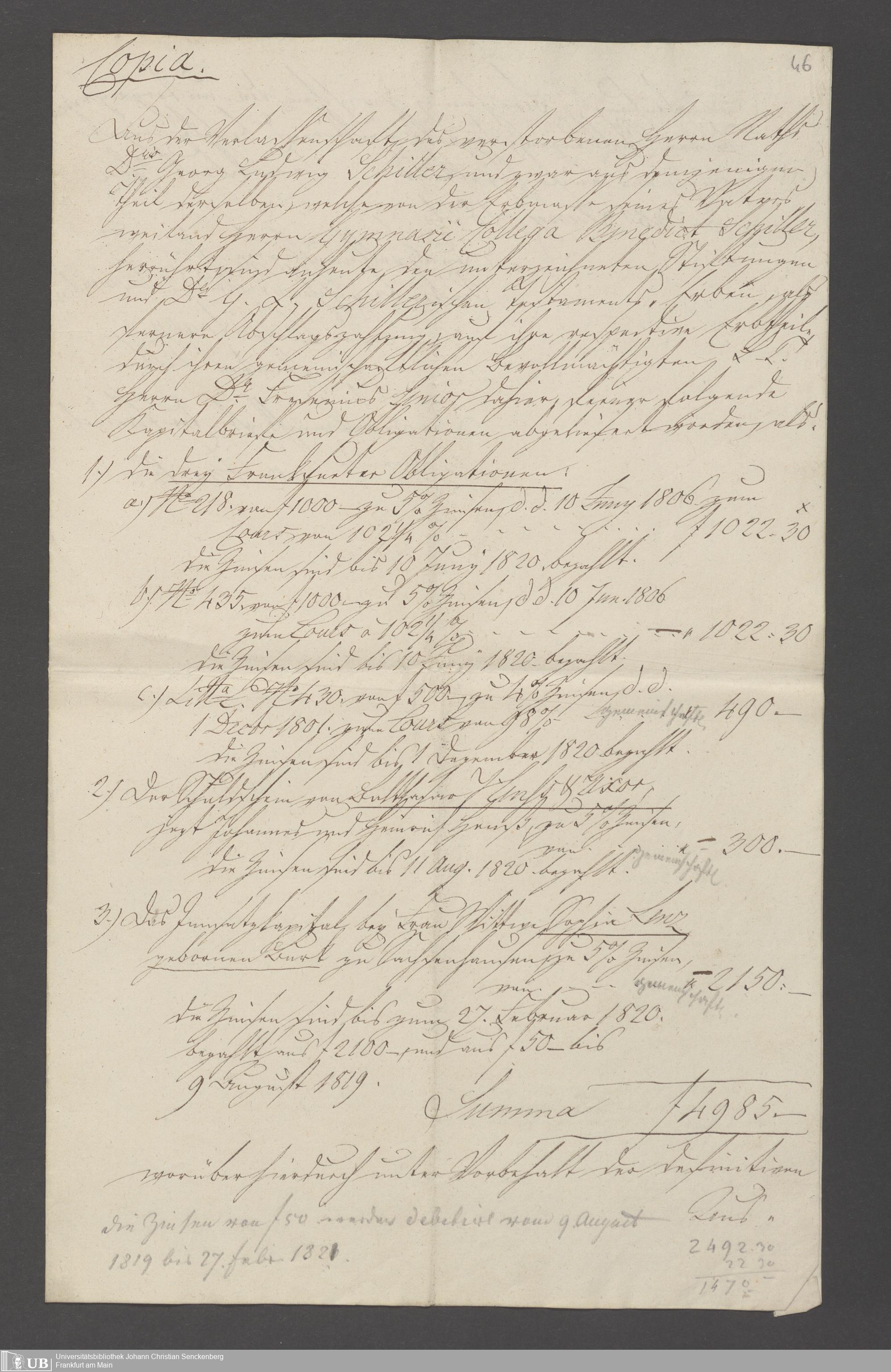 B 5 Dr. Senckenbergische Stiftung, 97 - Erbschaft Dr. Schiller