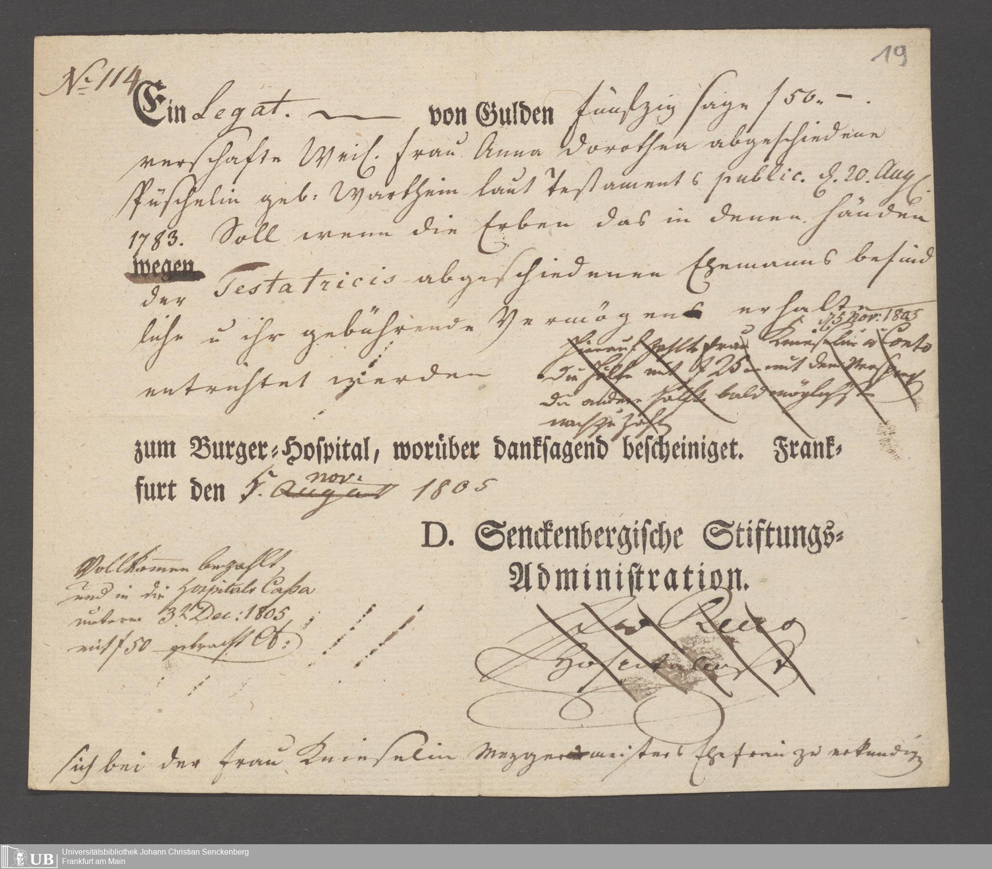 B 5 Dr. Senckenbergische Stiftung, 98 - Testamente