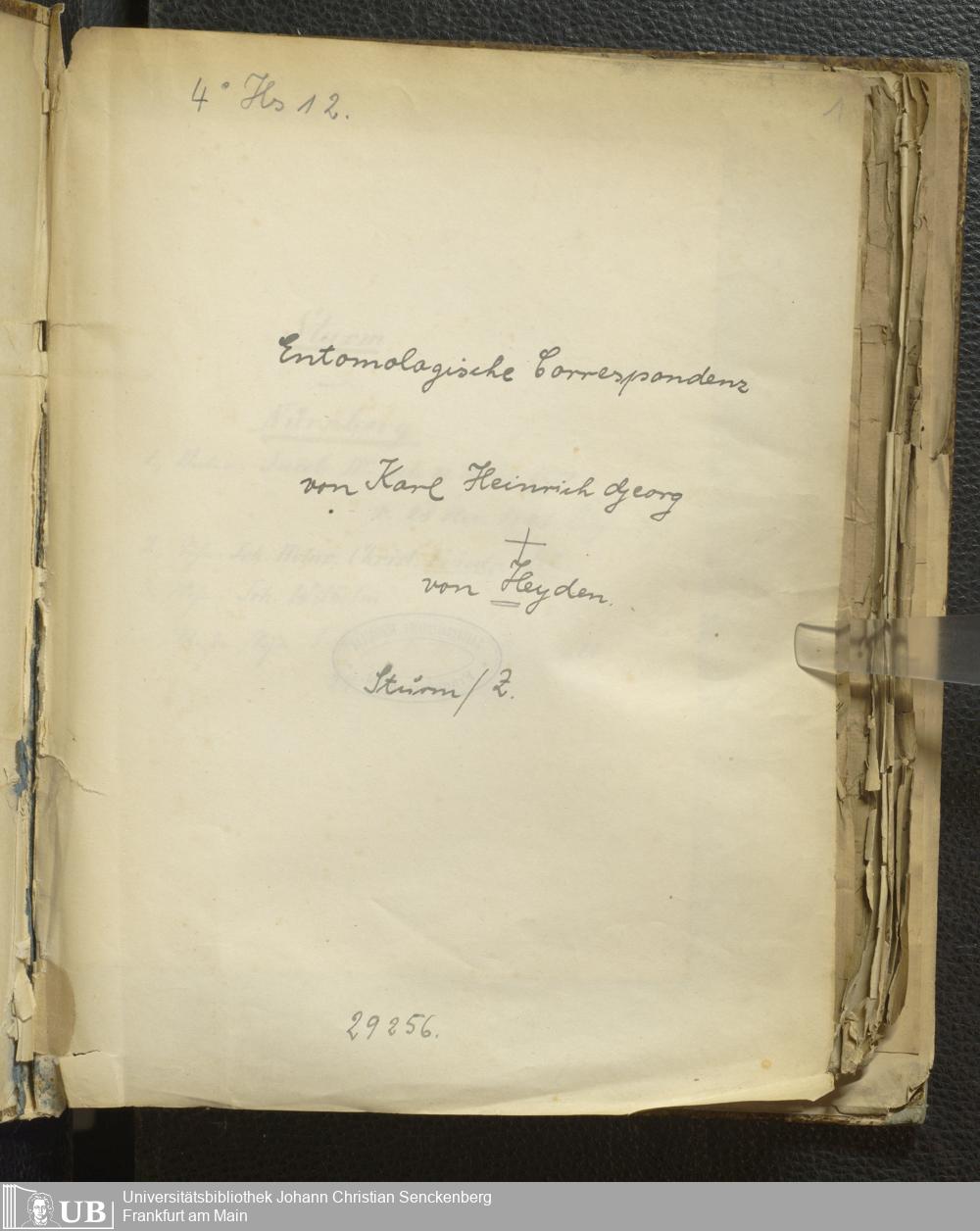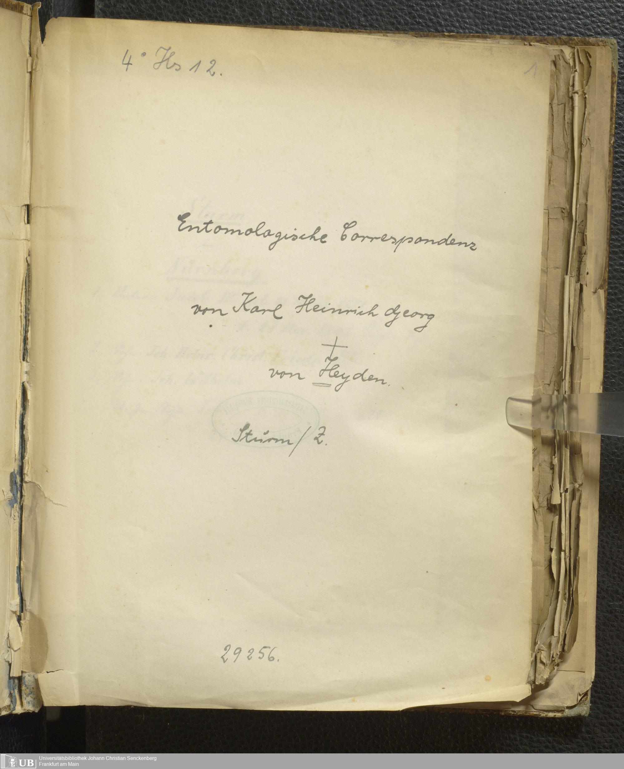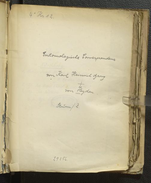 4˚ Hs 12 Bd. 6 - Entomologische Correspondenz von Karl Heinrich Georg von Heyden. Sturm/Z