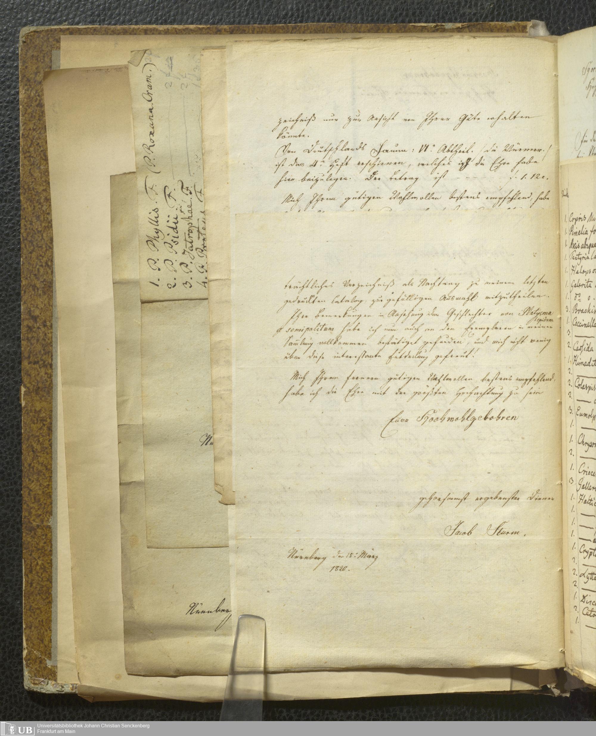 4˚ Hs 12 Bd. 6 - Entomologische Correspondenz von Karl Heinrich Georg von Heyden. Sturm/Z