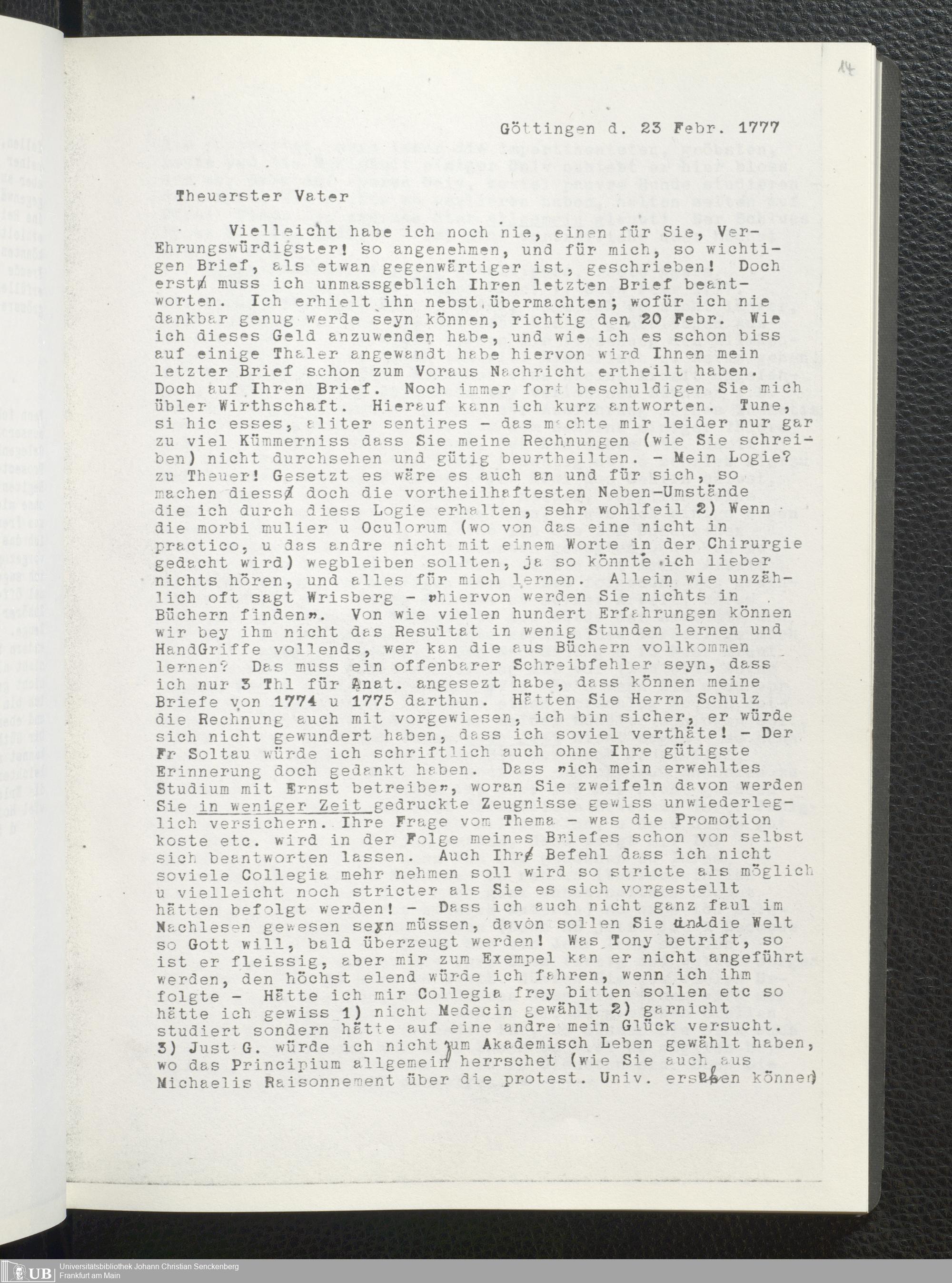 Nachlass Johann Christian Senckenberg