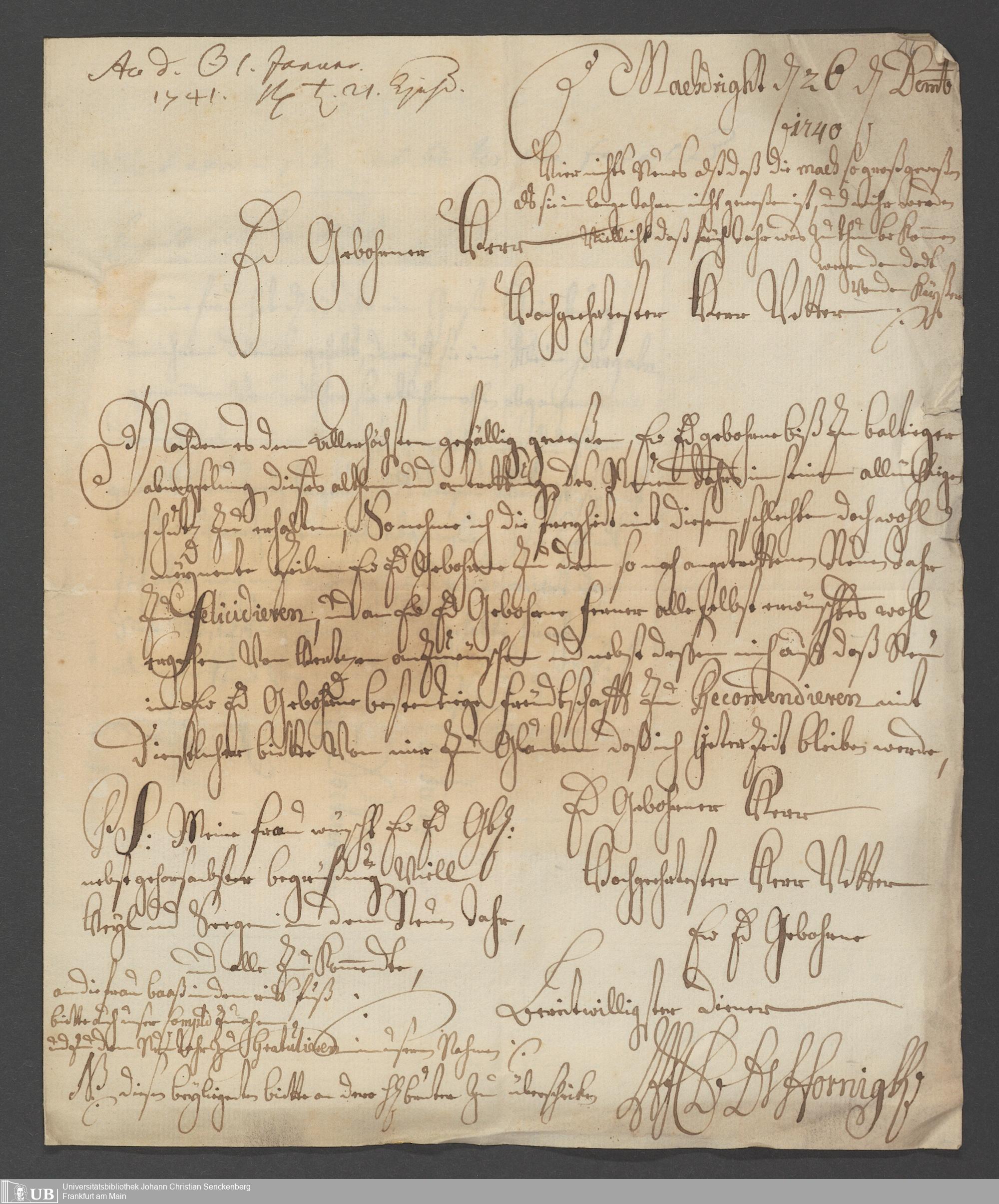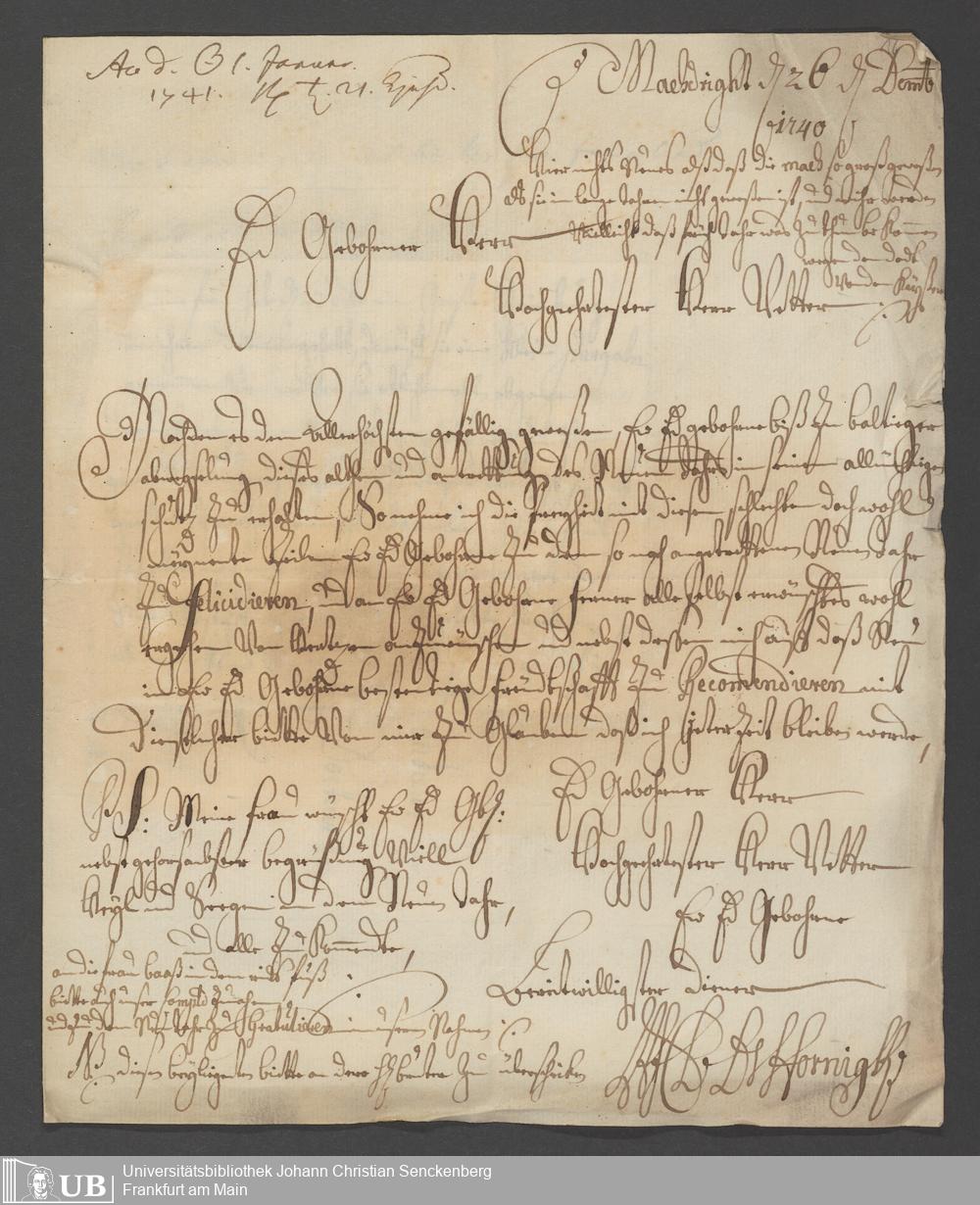 Na 31 Nachlass Johann Christian Senckenberg, 68 - Briefe von verschiedenen Verwandten