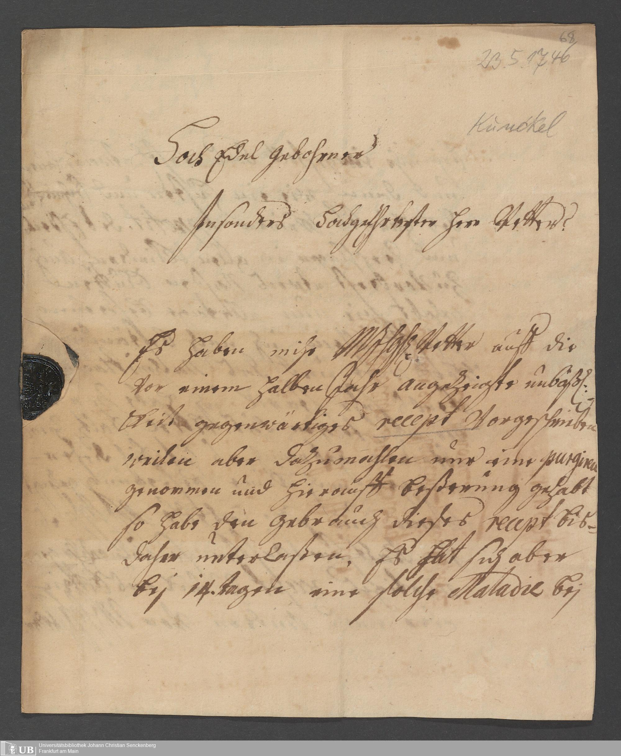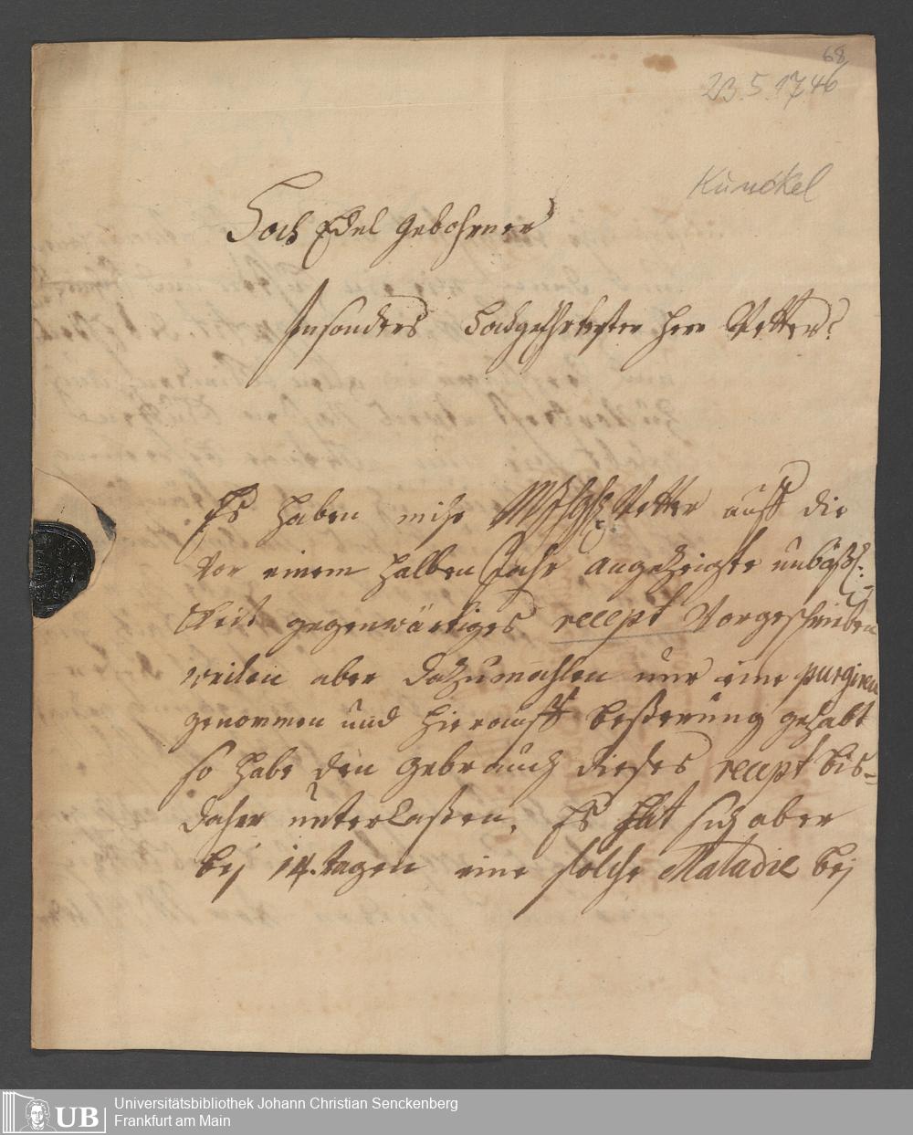 Na 31 Nachlass Johann Christian Senckenberg, 68 - Briefe von verschiedenen Verwandten