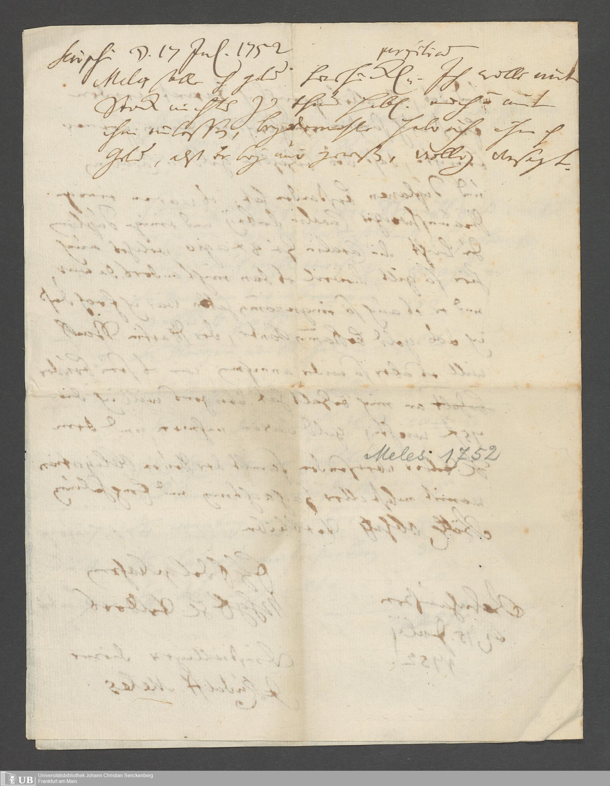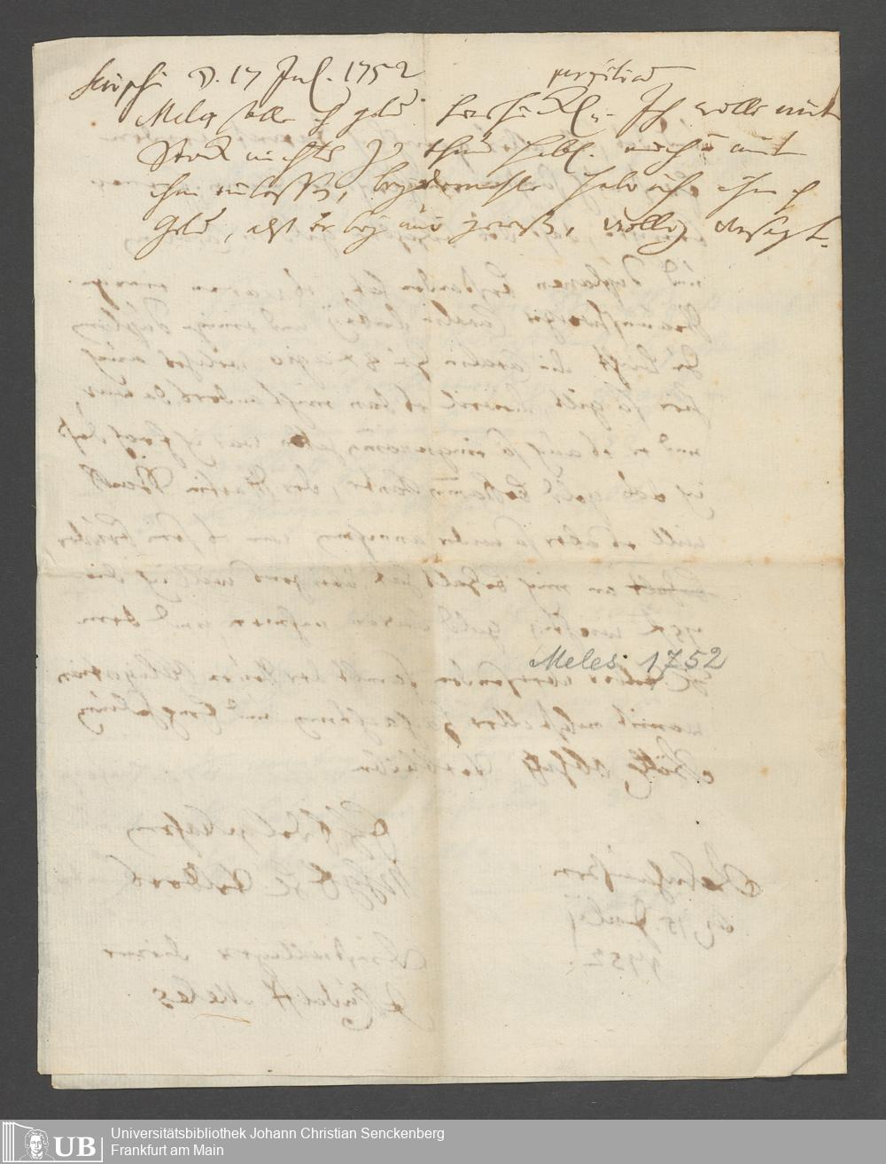 Na 31 Nachlass Johann Christian Senckenberg, 68 - Briefe von verschiedenen Verwandten