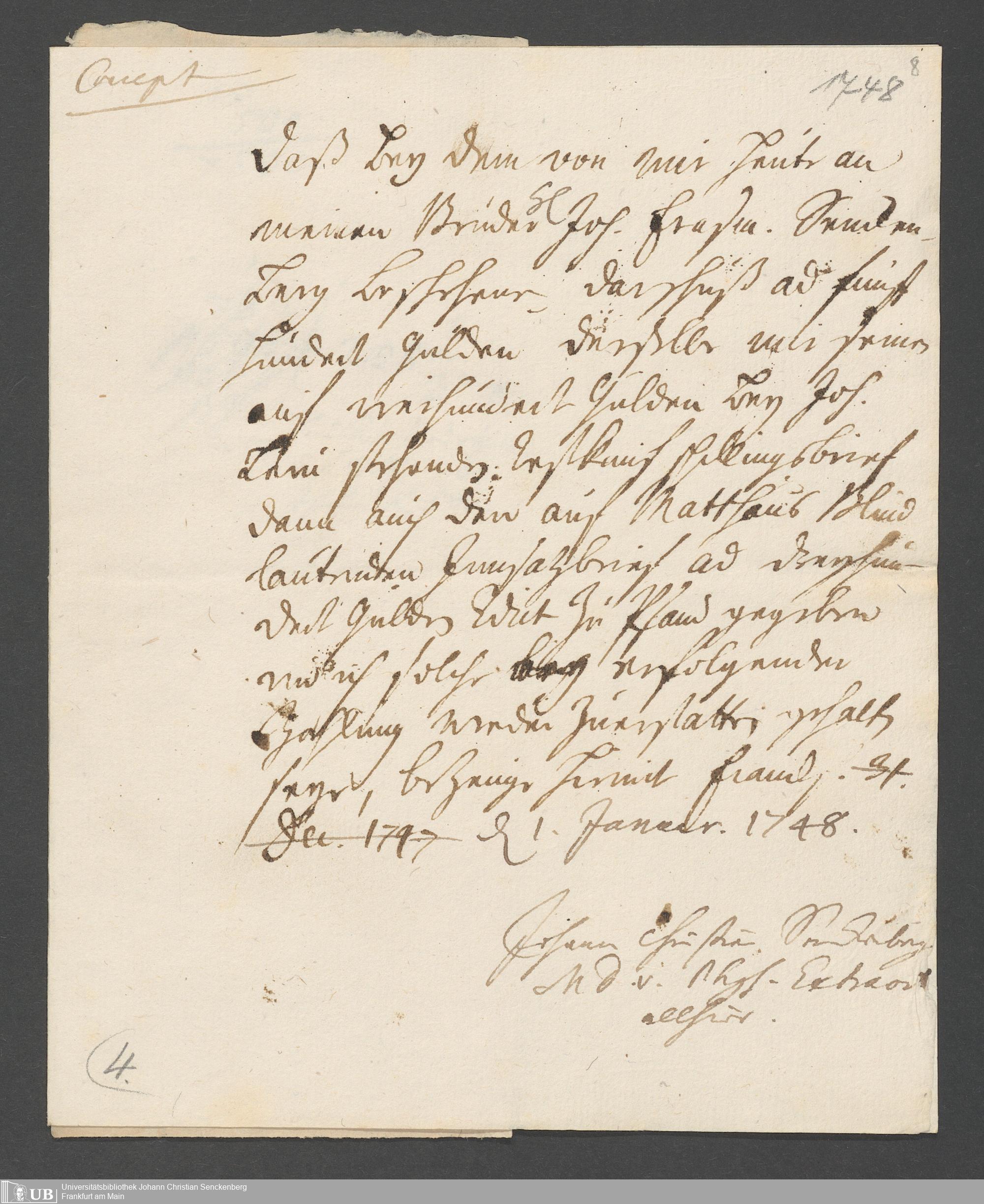 Na 31 Nachlass Johann Christian Senckenberg, 70 - Darlehen Johann Christian Senckenbergs an Erasmus Senckenberg