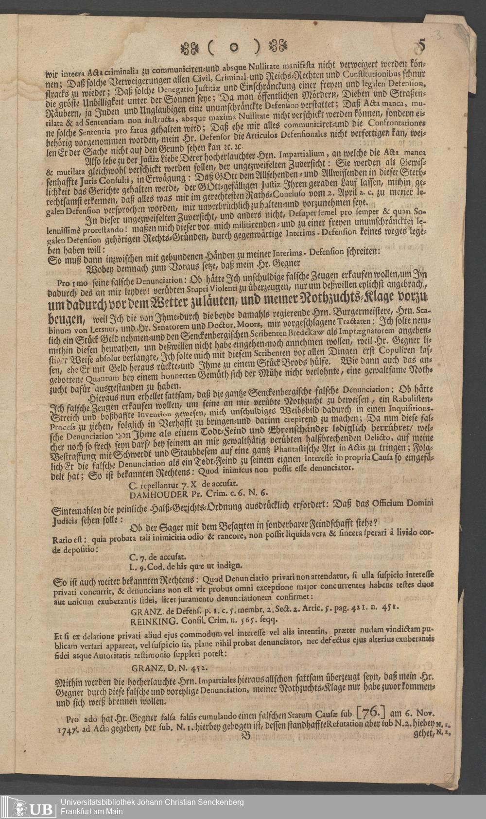Na 31 Nachlass Johann Christian Senckenberg, 73 - Prozeßakten Agricola (Druck) 1749. Nürnberger Urteil gegen Erasmus Senckenberg (Druck) 1761. Vergleichsverhandlung mit dem Senat (p. I.1.b.20)