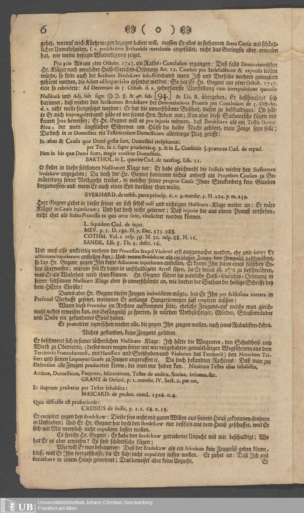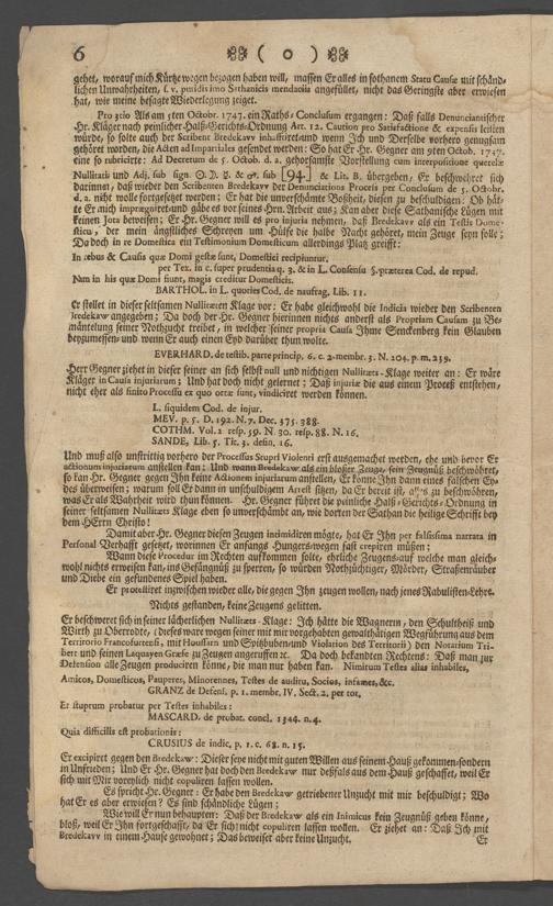 Na 31 Nachlass Johann Christian Senckenberg, 73 - Prozeßakten Agricola (Druck) 1749. Nürnberger Urteil gegen Erasmus Senckenberg (Druck) 1761. Vergleichsverhandlung mit dem Senat (p. I.1.b.20)