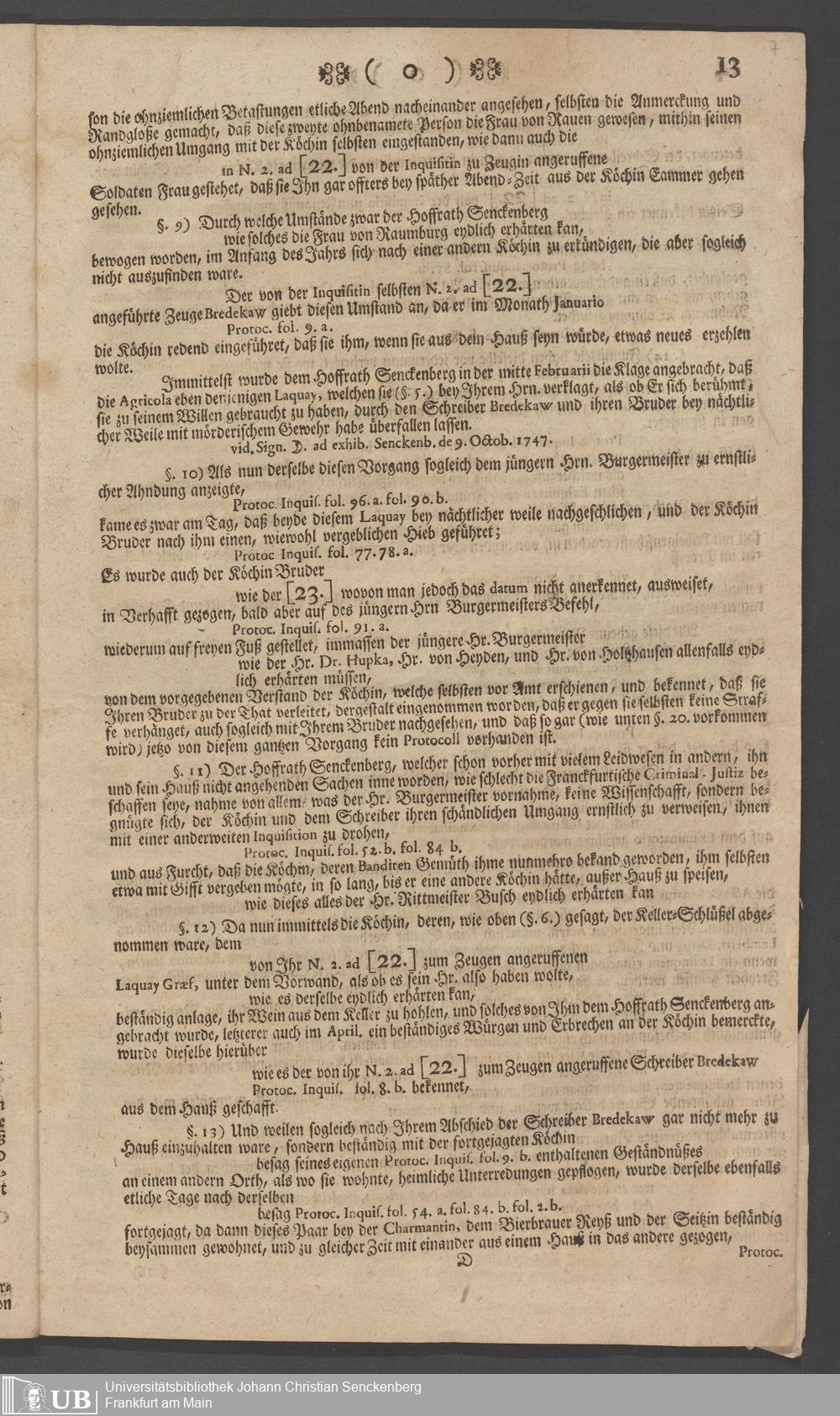 Na 31 Nachlass Johann Christian Senckenberg, 73 - Prozeßakten Agricola (Druck) 1749. Nürnberger Urteil gegen Erasmus Senckenberg (Druck) 1761. Vergleichsverhandlung mit dem Senat (p. I.1.b.20)