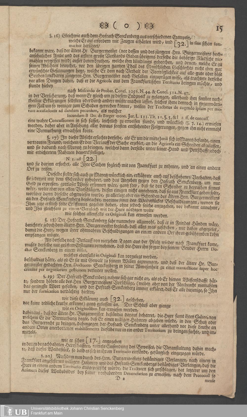 Na 31 Nachlass Johann Christian Senckenberg, 73 - Prozeßakten Agricola (Druck) 1749. Nürnberger Urteil gegen Erasmus Senckenberg (Druck) 1761. Vergleichsverhandlung mit dem Senat (p. I.1.b.20)