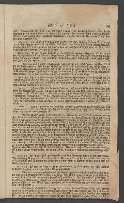 Na 31 Nachlass Johann Christian Senckenberg, 73 - Prozeßakten Agricola (Druck) 1749. Nürnberger Urteil gegen Erasmus Senckenberg (Druck) 1761. Vergleichsverhandlung mit dem Senat (p. I.1.b.20)