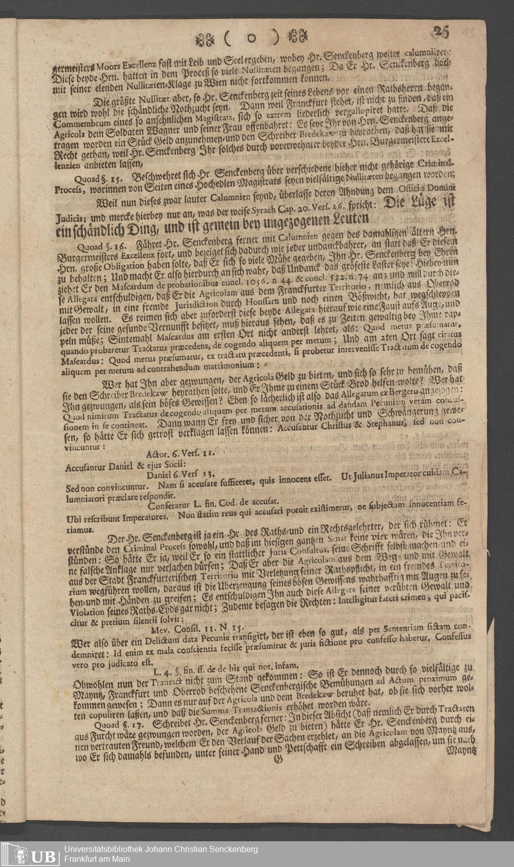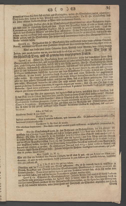 Na 31 Nachlass Johann Christian Senckenberg, 73 - Prozeßakten Agricola (Druck) 1749. Nürnberger Urteil gegen Erasmus Senckenberg (Druck) 1761. Vergleichsverhandlung mit dem Senat (p. I.1.b.20)