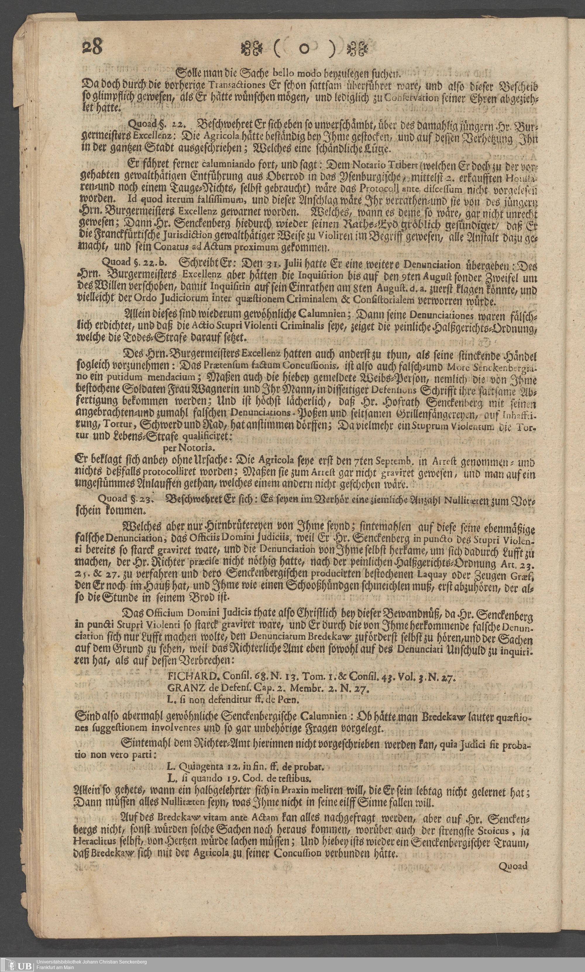 Na 31 Nachlass Johann Christian Senckenberg, 73 - Prozeßakten Agricola (Druck) 1749. Nürnberger Urteil gegen Erasmus Senckenberg (Druck) 1761. Vergleichsverhandlung mit dem Senat (p. I.1.b.20)