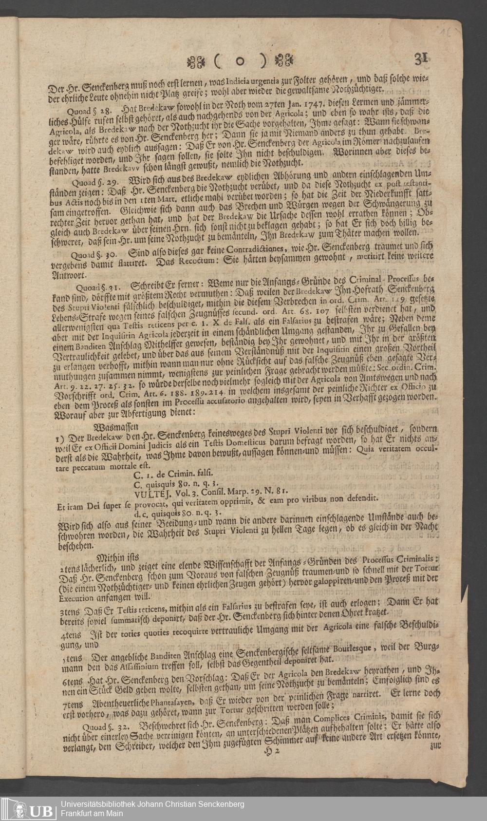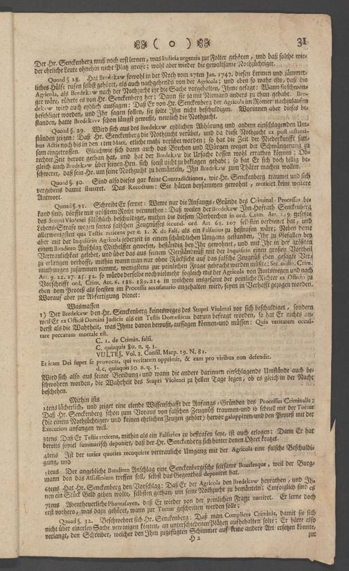 Na 31 Nachlass Johann Christian Senckenberg, 73 - Prozeßakten Agricola (Druck) 1749. Nürnberger Urteil gegen Erasmus Senckenberg (Druck) 1761. Vergleichsverhandlung mit dem Senat (p. I.1.b.20)