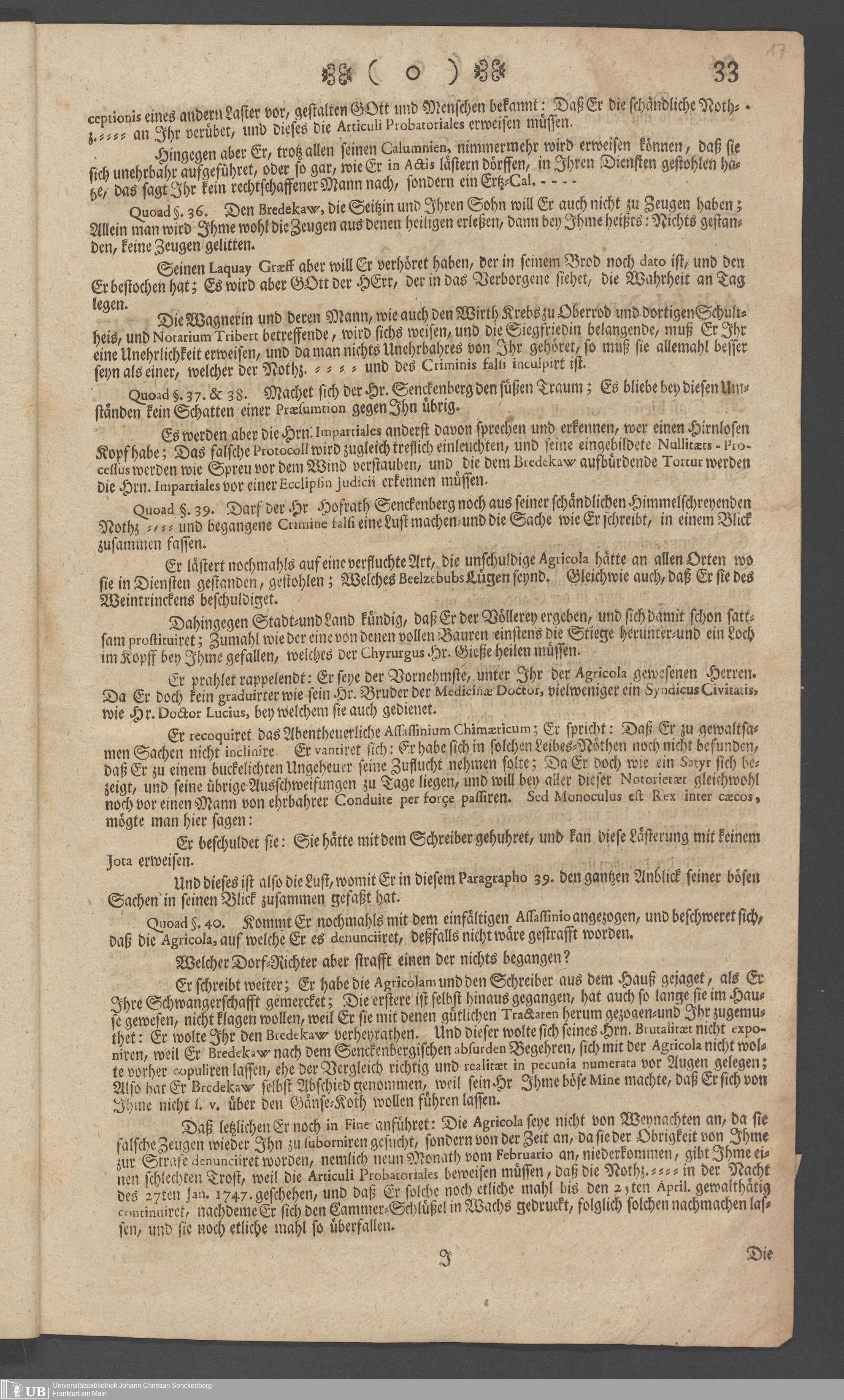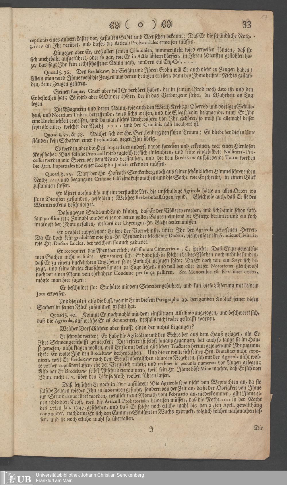 Na 31 Nachlass Johann Christian Senckenberg, 73 - Prozeßakten Agricola (Druck) 1749. Nürnberger Urteil gegen Erasmus Senckenberg (Druck) 1761. Vergleichsverhandlung mit dem Senat (p. I.1.b.20)