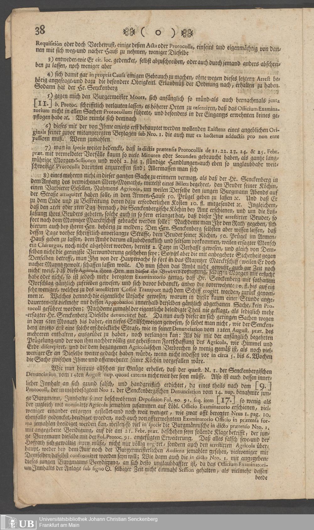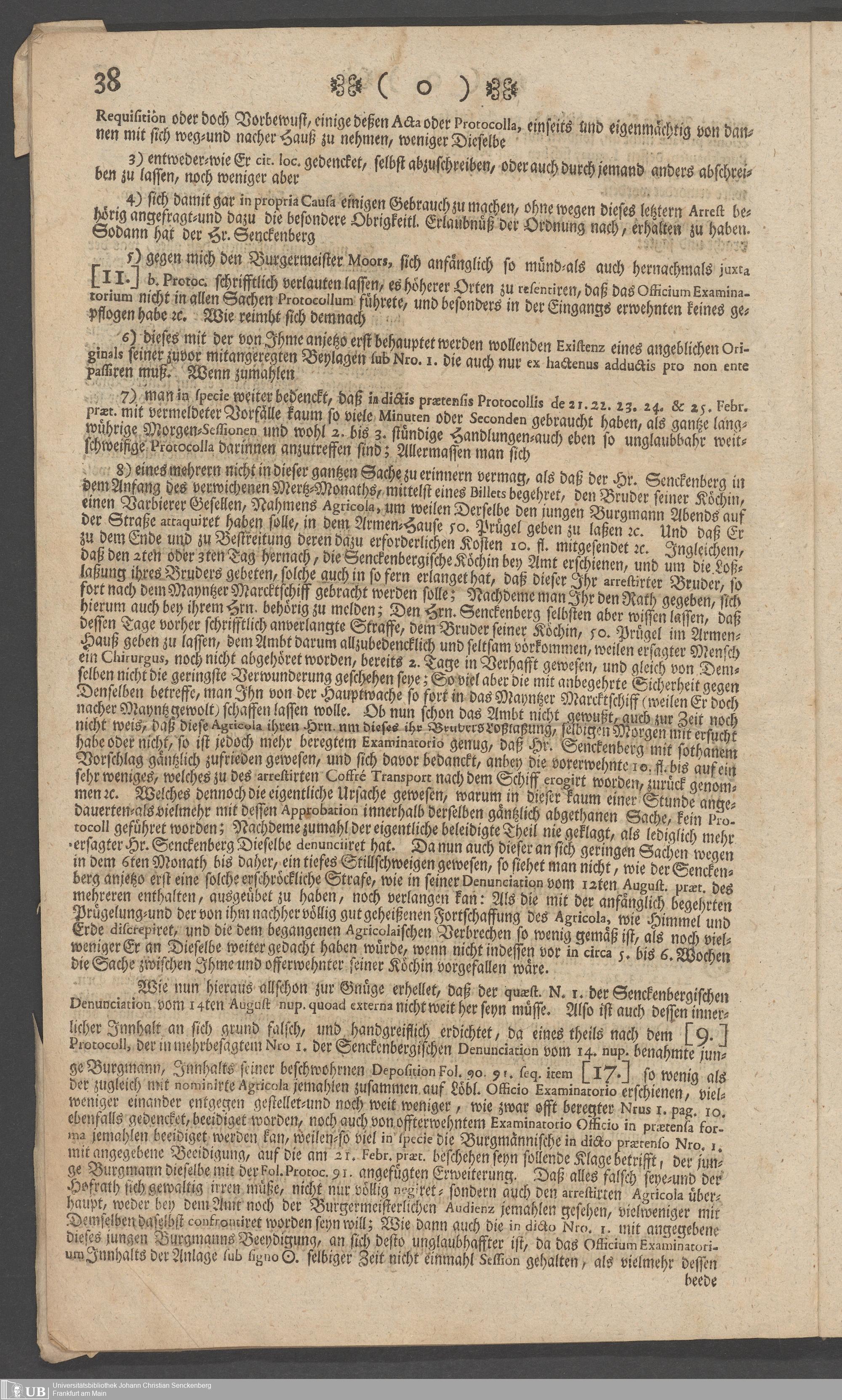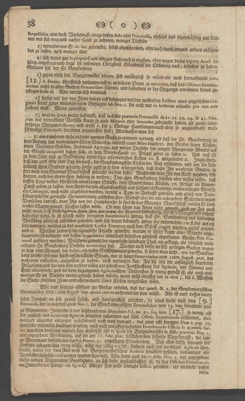 Na 31 Nachlass Johann Christian Senckenberg, 73 - Prozeßakten Agricola (Druck) 1749. Nürnberger Urteil gegen Erasmus Senckenberg (Druck) 1761. Vergleichsverhandlung mit dem Senat (p. I.1.b.20)