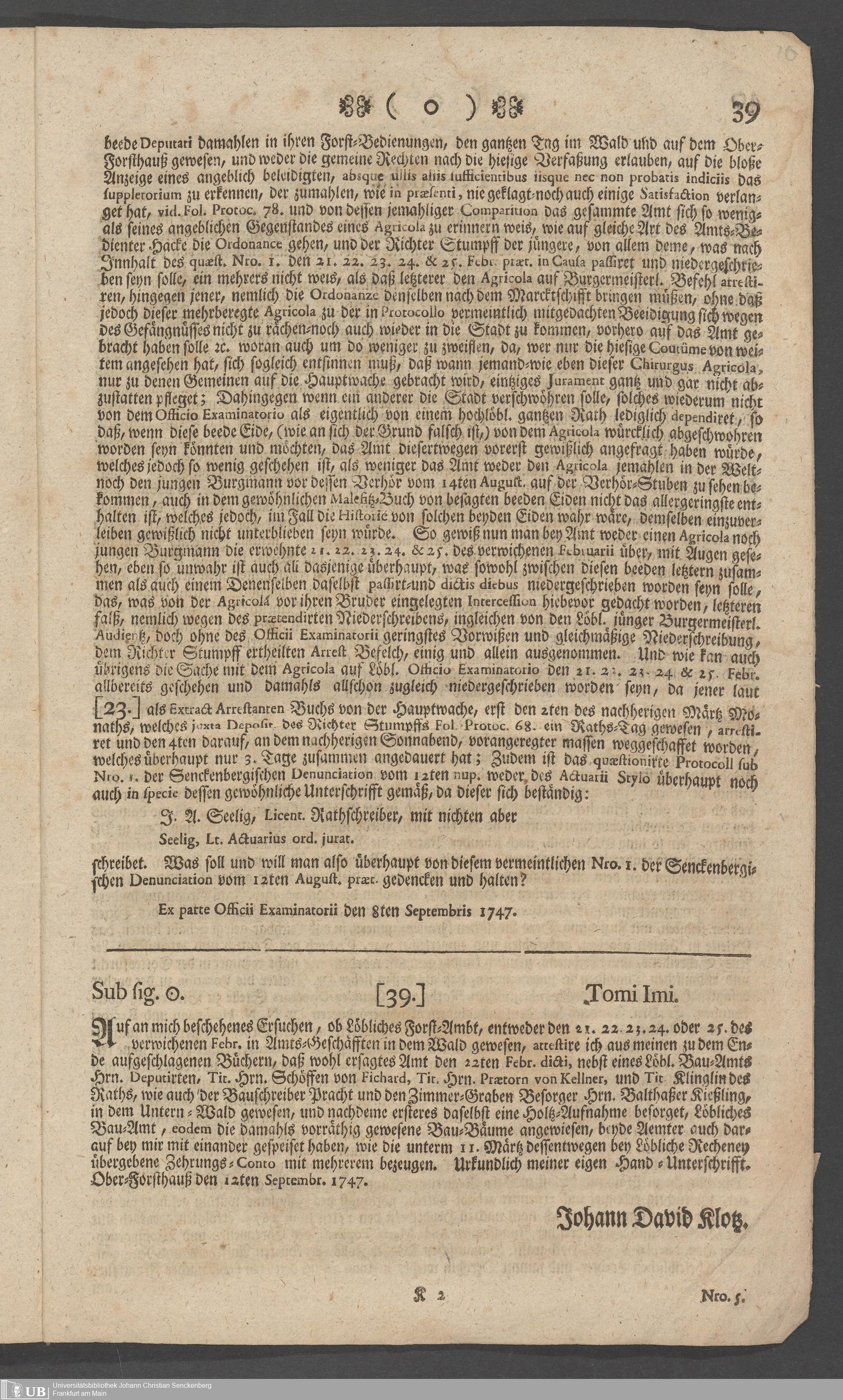 Na 31 Nachlass Johann Christian Senckenberg, 73 - Prozeßakten Agricola (Druck) 1749. Nürnberger Urteil gegen Erasmus Senckenberg (Druck) 1761. Vergleichsverhandlung mit dem Senat (p. I.1.b.20)