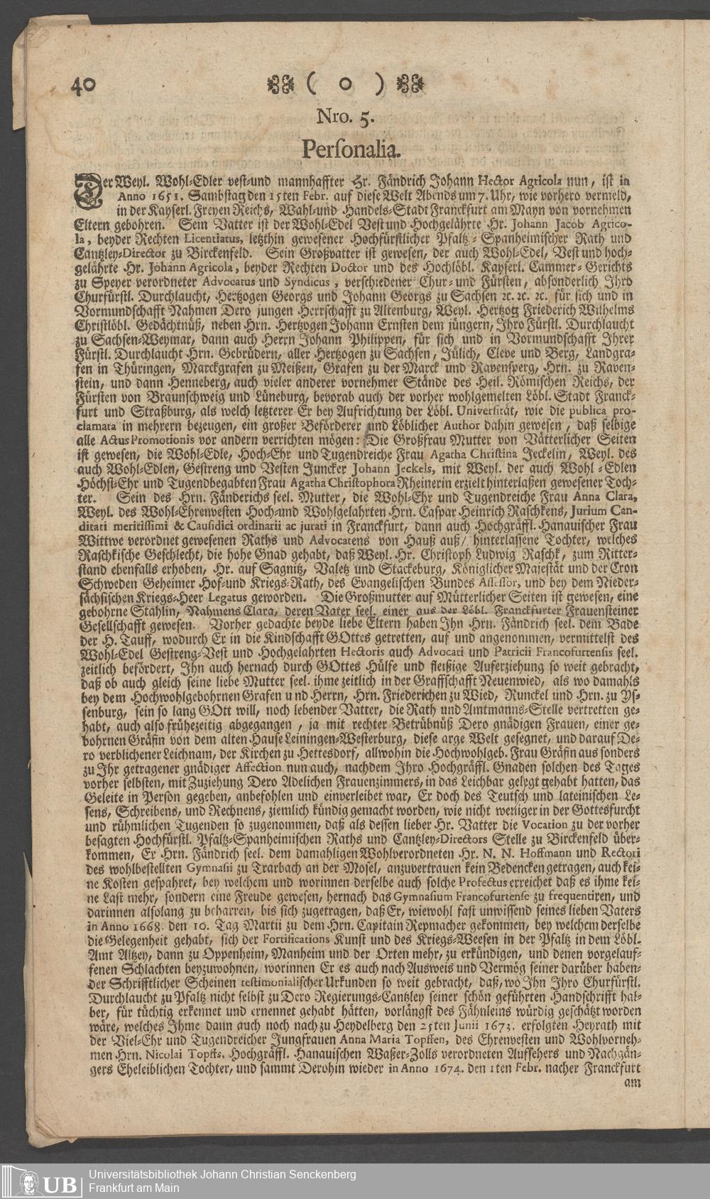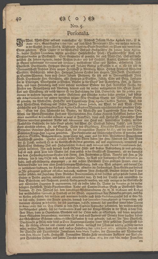 Na 31 Nachlass Johann Christian Senckenberg, 73 - Prozeßakten Agricola (Druck) 1749. Nürnberger Urteil gegen Erasmus Senckenberg (Druck) 1761. Vergleichsverhandlung mit dem Senat (p. I.1.b.20)