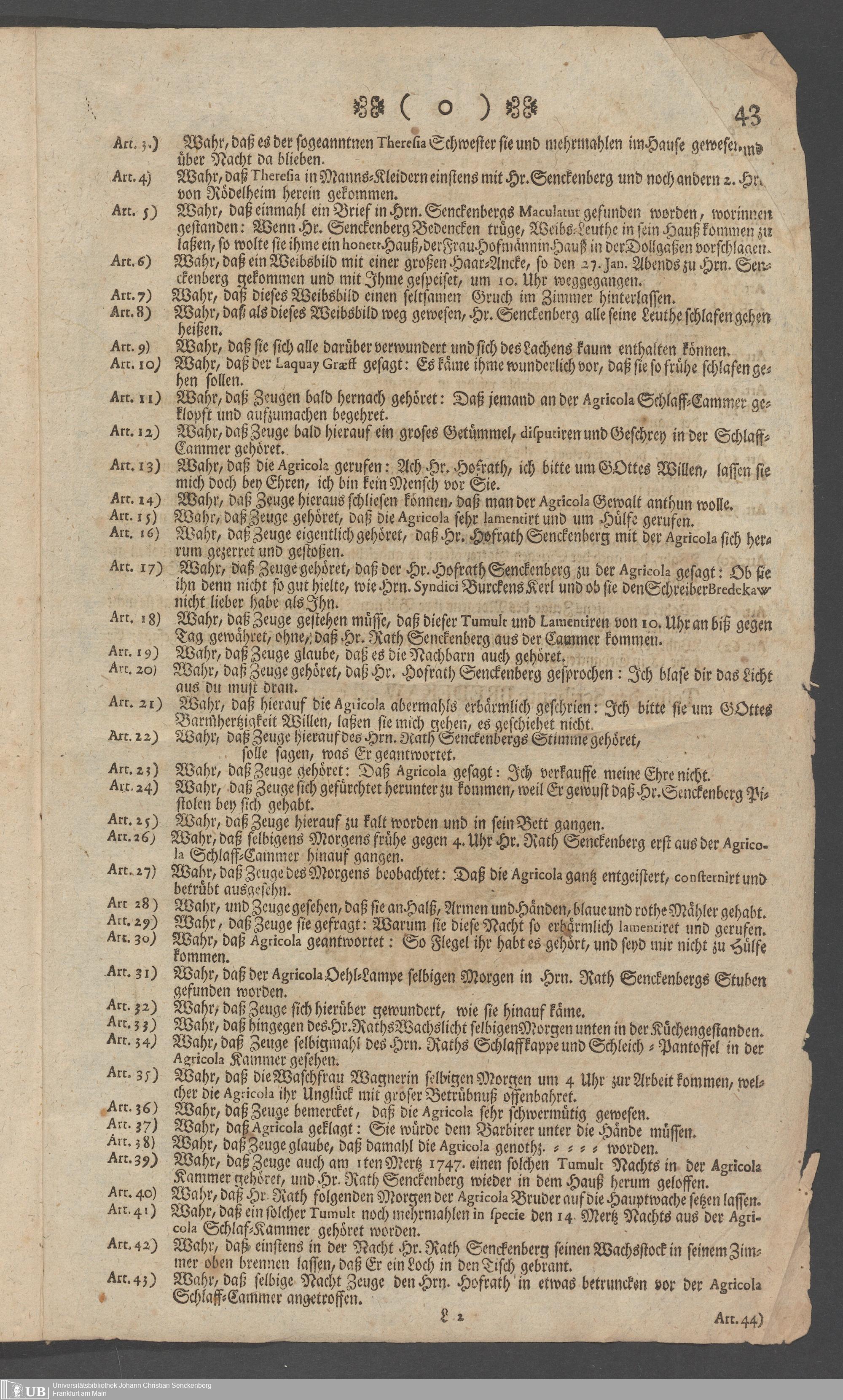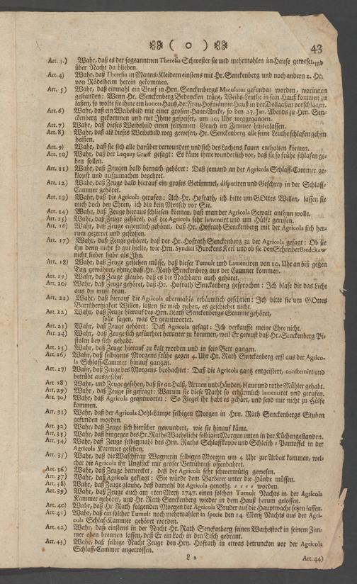 Na 31 Nachlass Johann Christian Senckenberg, 73 - Prozeßakten Agricola (Druck) 1749. Nürnberger Urteil gegen Erasmus Senckenberg (Druck) 1761. Vergleichsverhandlung mit dem Senat (p. I.1.b.20)