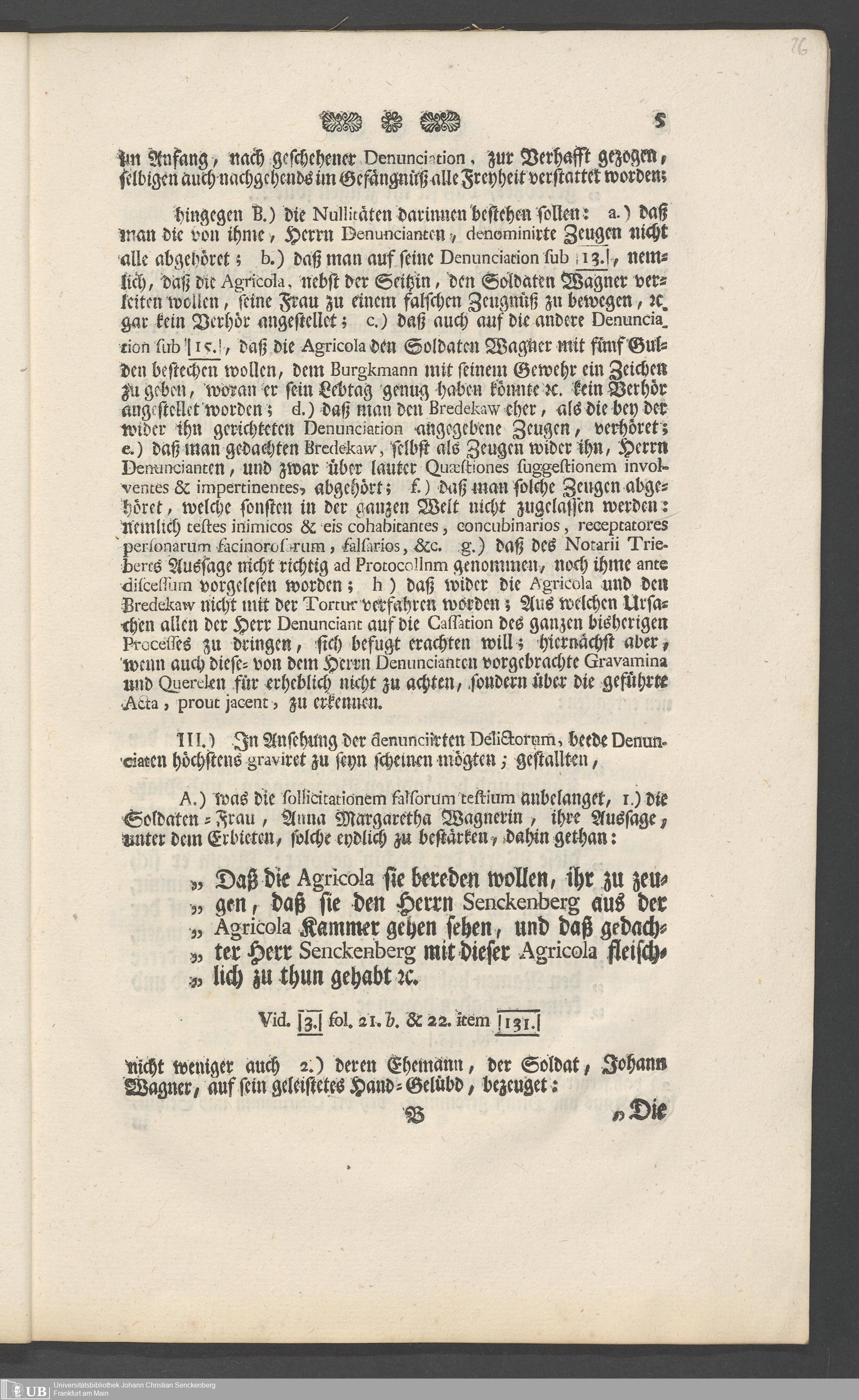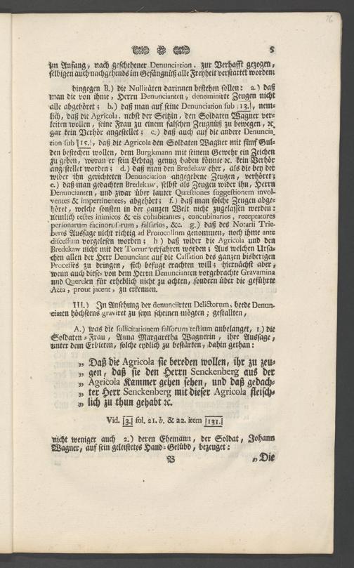 Na 31 Nachlass Johann Christian Senckenberg, 73 - Prozeßakten Agricola (Druck) 1749. Nürnberger Urteil gegen Erasmus Senckenberg (Druck) 1761. Vergleichsverhandlung mit dem Senat (p. I.1.b.20)