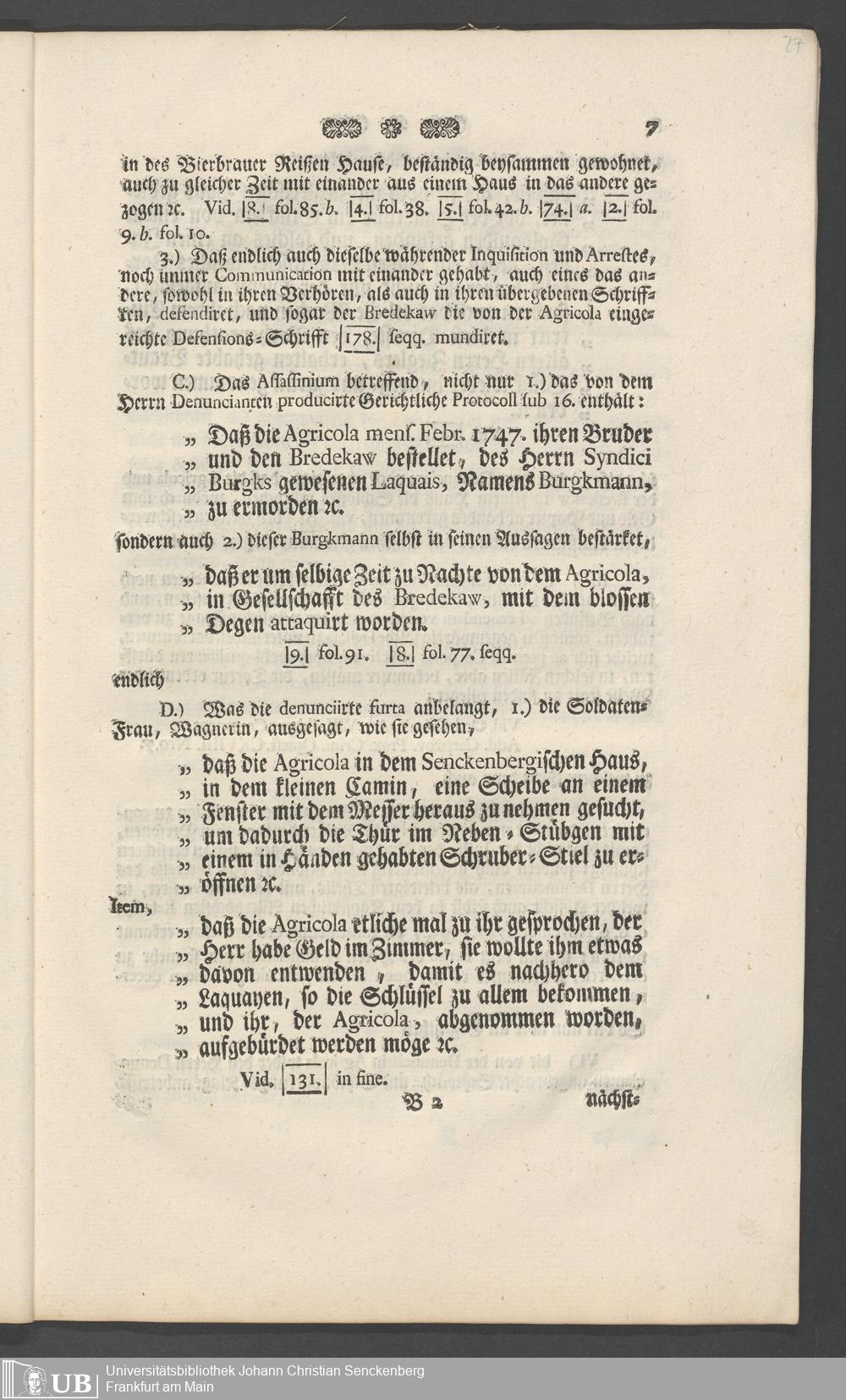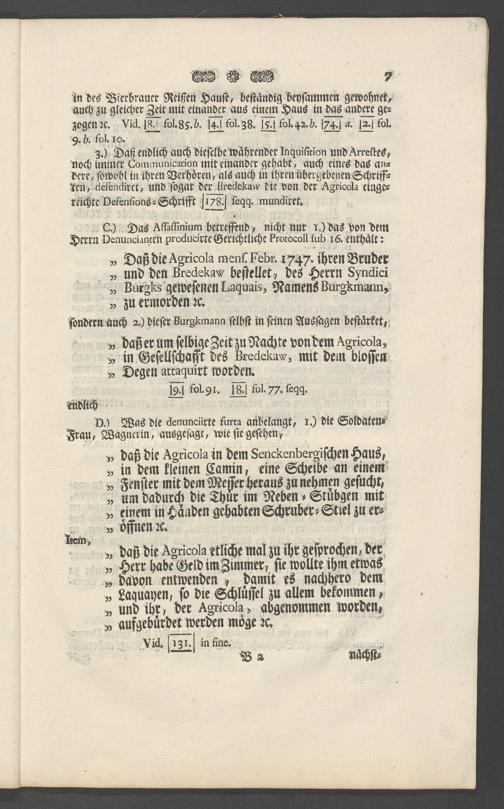 Na 31 Nachlass Johann Christian Senckenberg, 73 - Prozeßakten Agricola (Druck) 1749. Nürnberger Urteil gegen Erasmus Senckenberg (Druck) 1761. Vergleichsverhandlung mit dem Senat (p. I.1.b.20)