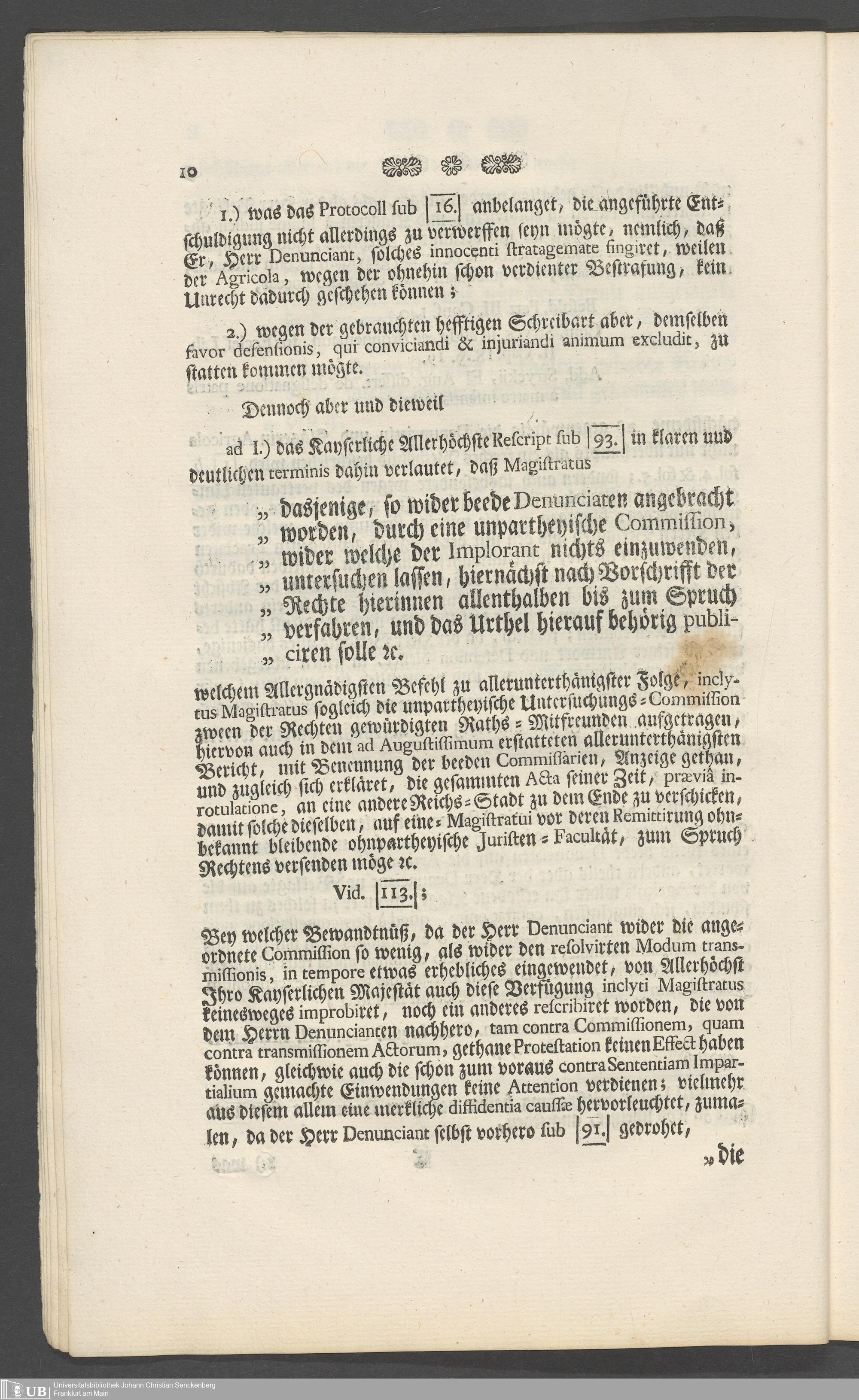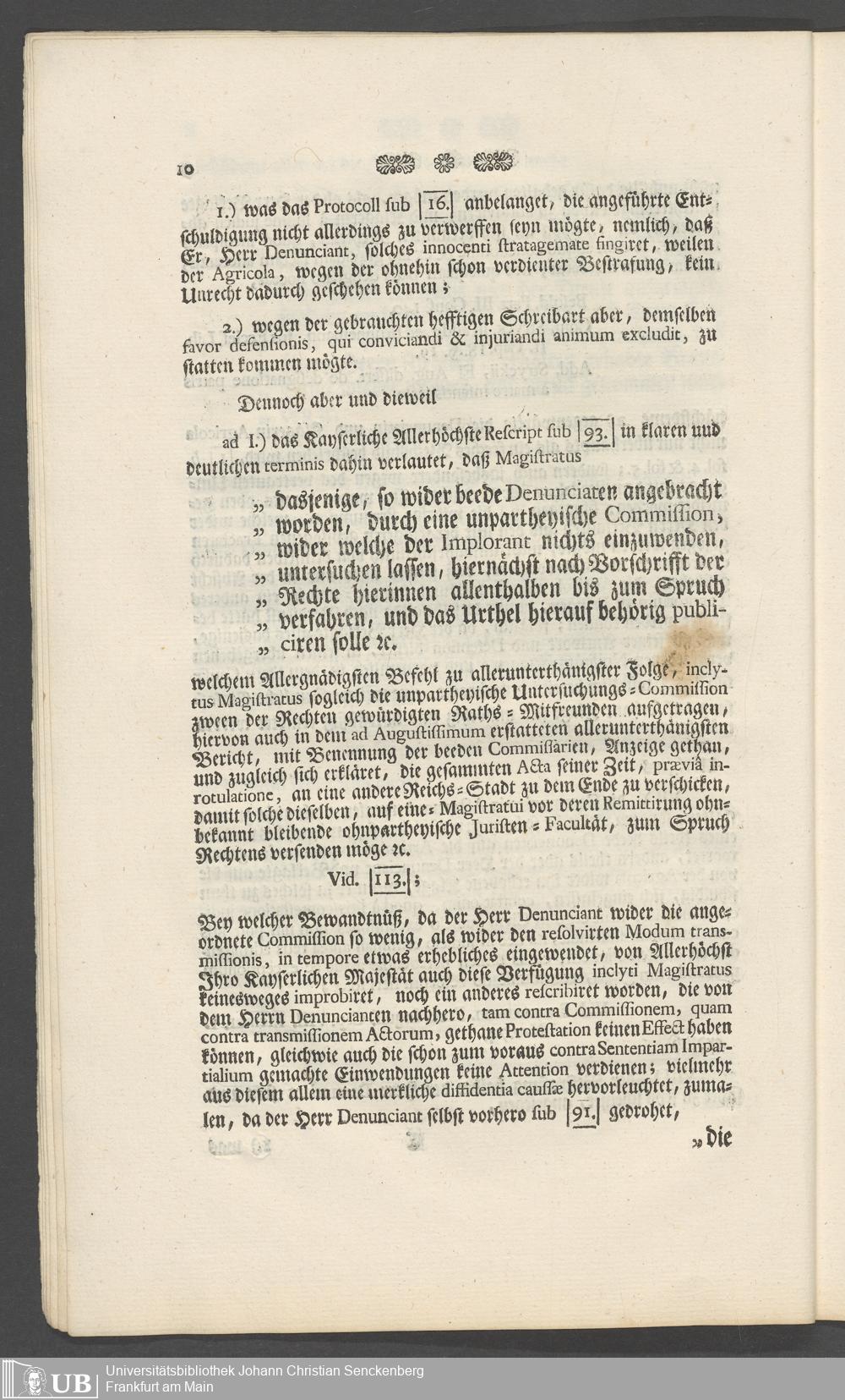 Na 31 Nachlass Johann Christian Senckenberg, 73 - Prozeßakten Agricola (Druck) 1749. Nürnberger Urteil gegen Erasmus Senckenberg (Druck) 1761. Vergleichsverhandlung mit dem Senat (p. I.1.b.20)