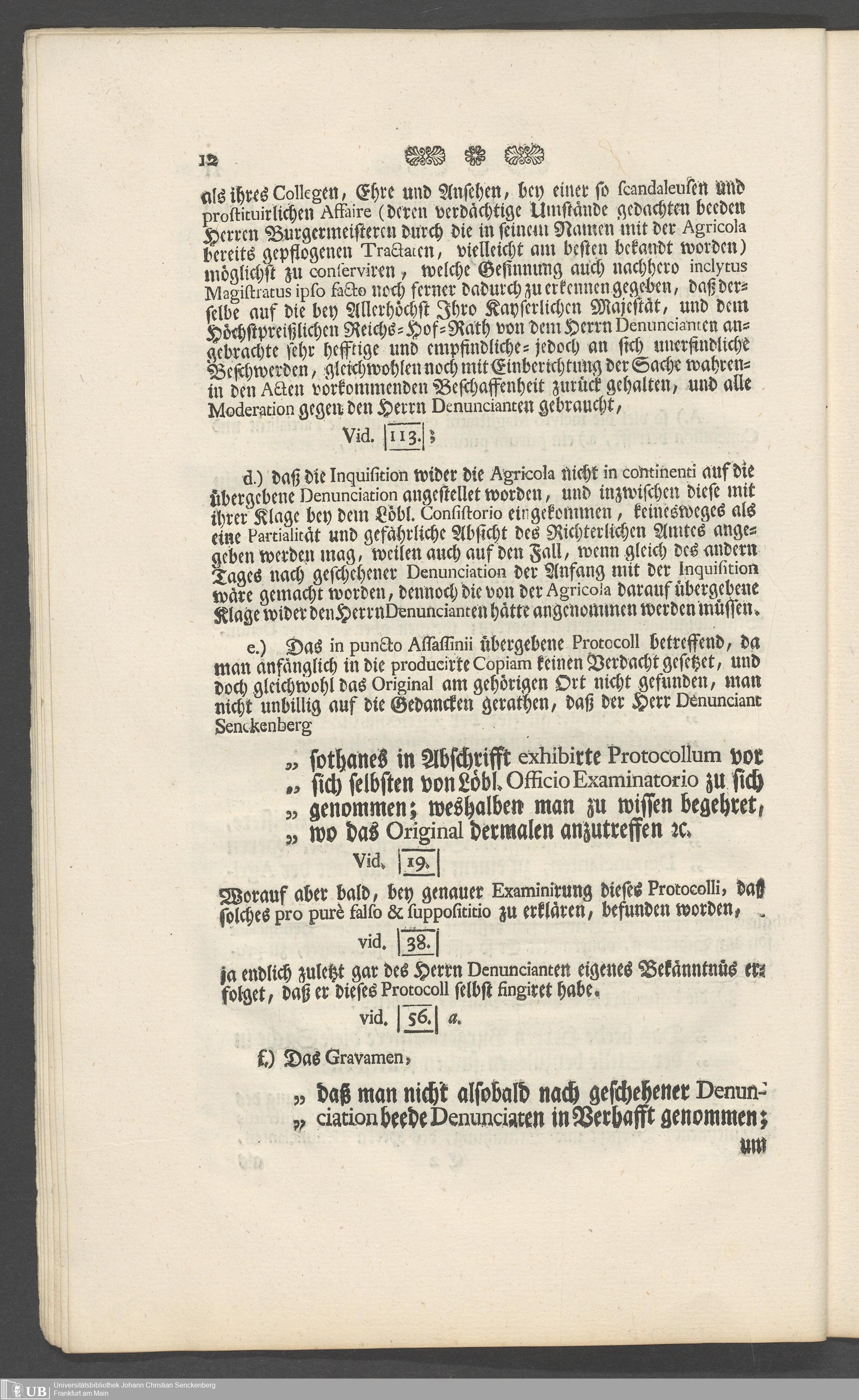 Na 31 Nachlass Johann Christian Senckenberg, 73 - Prozeßakten Agricola (Druck) 1749. Nürnberger Urteil gegen Erasmus Senckenberg (Druck) 1761. Vergleichsverhandlung mit dem Senat (p. I.1.b.20)