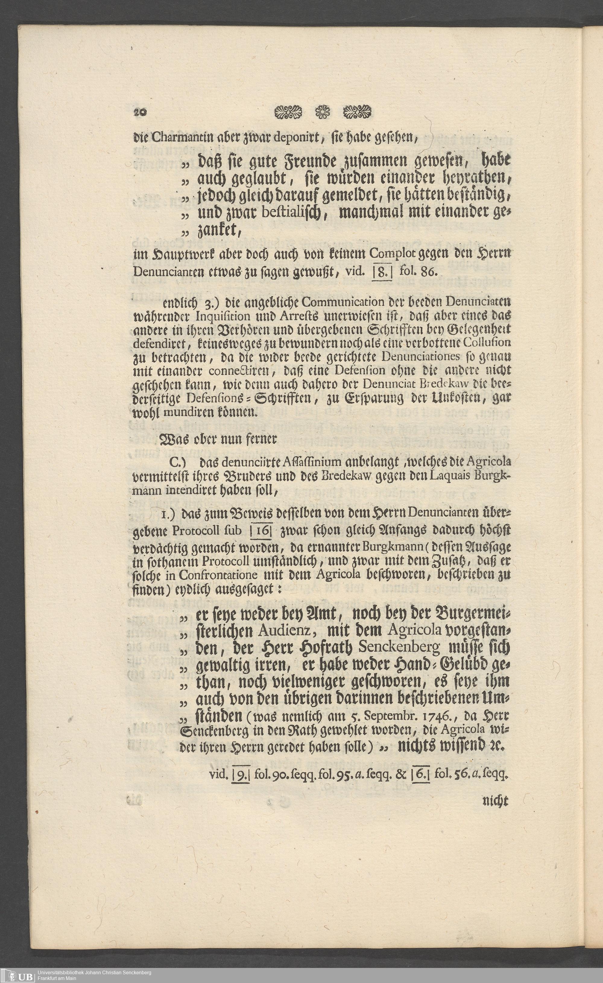 Na 31 Nachlass Johann Christian Senckenberg, 73 - Prozeßakten Agricola (Druck) 1749. Nürnberger Urteil gegen Erasmus Senckenberg (Druck) 1761. Vergleichsverhandlung mit dem Senat (p. I.1.b.20)